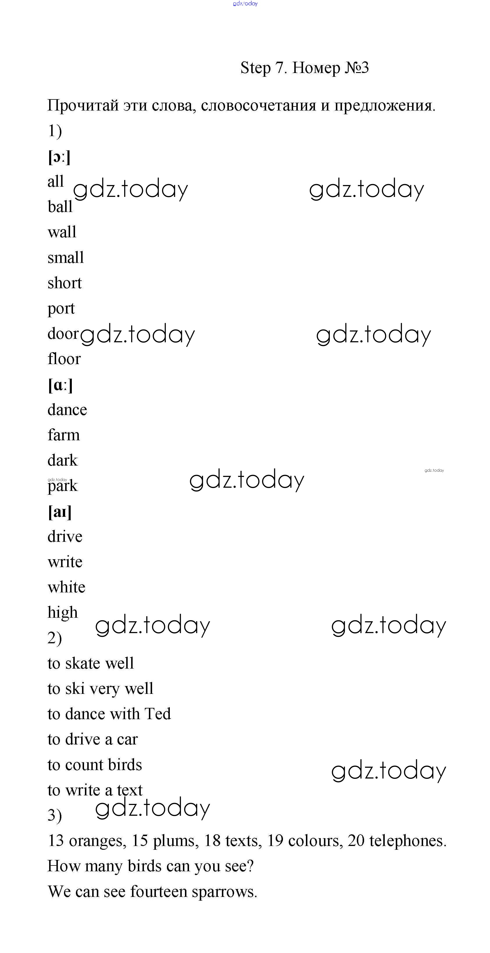 На страницах сайта gdz.today вы найдете учебный и вспомогательный материал, направленный на улучшения знаний школьной программы. ГДЗ - онлайн мир знаний Step 7 Unit 4 3 Учебнику по Английскому языку для 3 класса Афанасьева, Михеева Дрофа Rainbow 2015