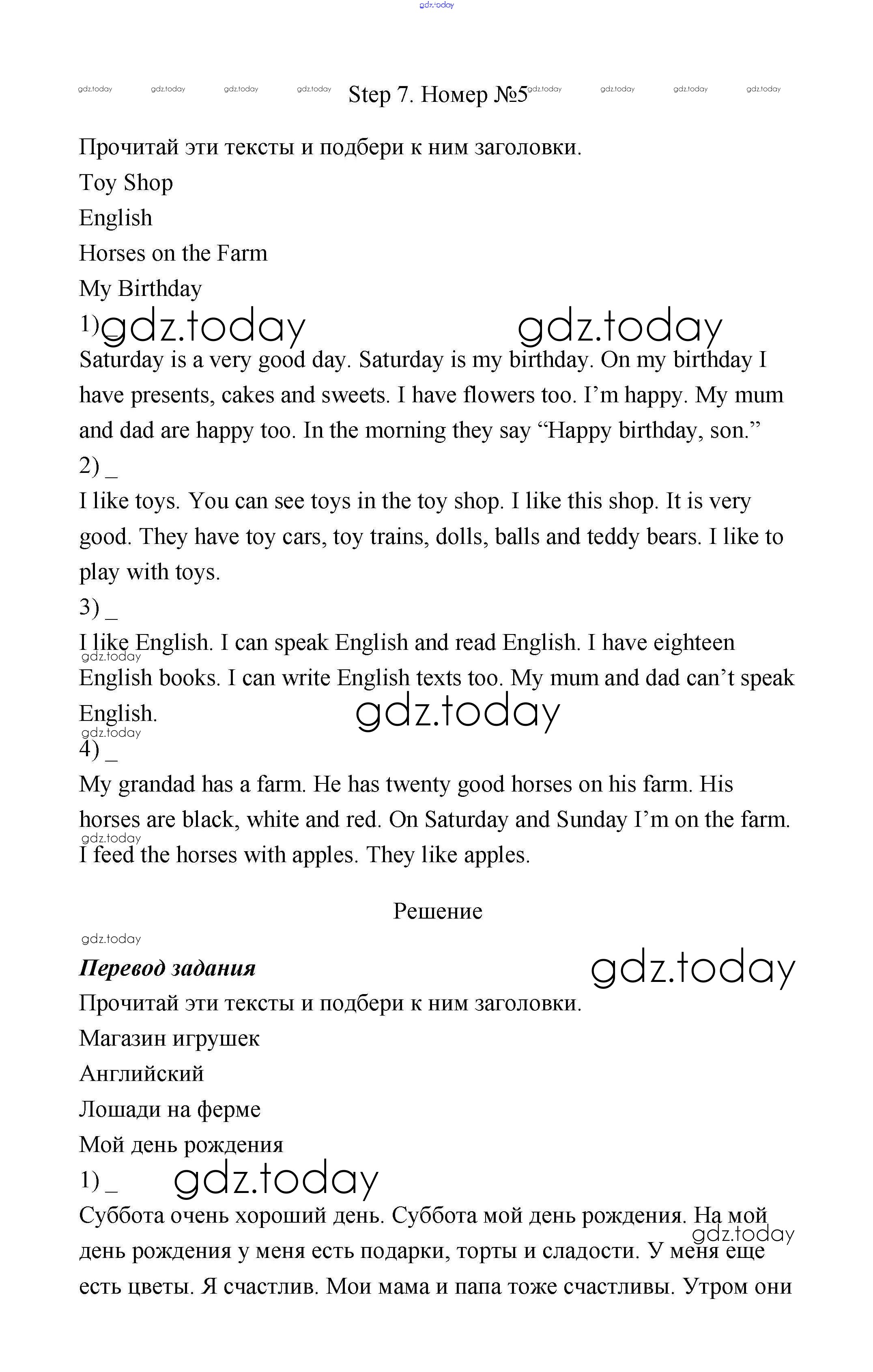 На страницах сайта gdz.today вы найдете учебный и вспомогательный материал, направленный на улучшения знаний школьной программы. ГДЗ - онлайн мир знаний Step 7 Unit 5 5 Учебнику по Английскому языку для 3 класса Афанасьева, Михеева Дрофа Rainbow 2015