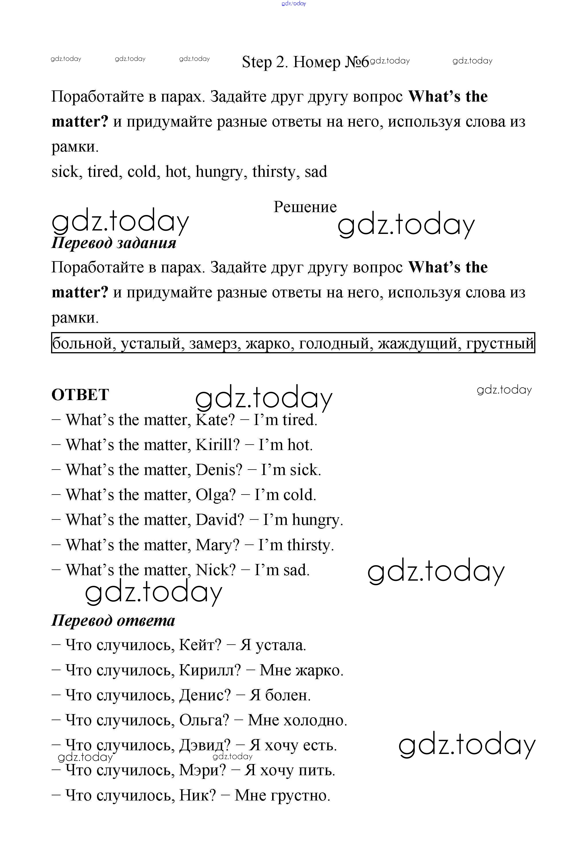 На страницах сайта gdz.today вы найдете учебный и вспомогательный материал, направленный на улучшения знаний школьной программы. ГДЗ - онлайн мир знаний Step 2 Unit 6 6 Учебнику по Английскому языку для 3 класса Афанасьева, Михеева Дрофа Rainbow 2015