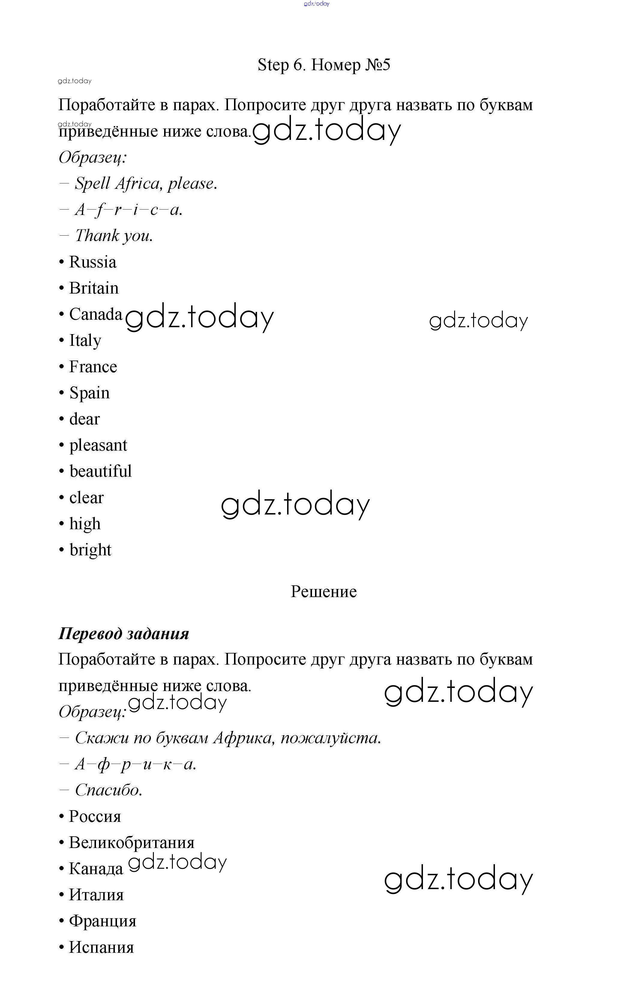 На страницах сайта gdz.today вы найдете учебный и вспомогательный материал, направленный на улучшения знаний школьной программы. ГДЗ - онлайн мир знаний Step 6 Unit 8 5 Учебнику по Английскому языку для 3 класса Афанасьева, Михеева Дрофа Rainbow 2015