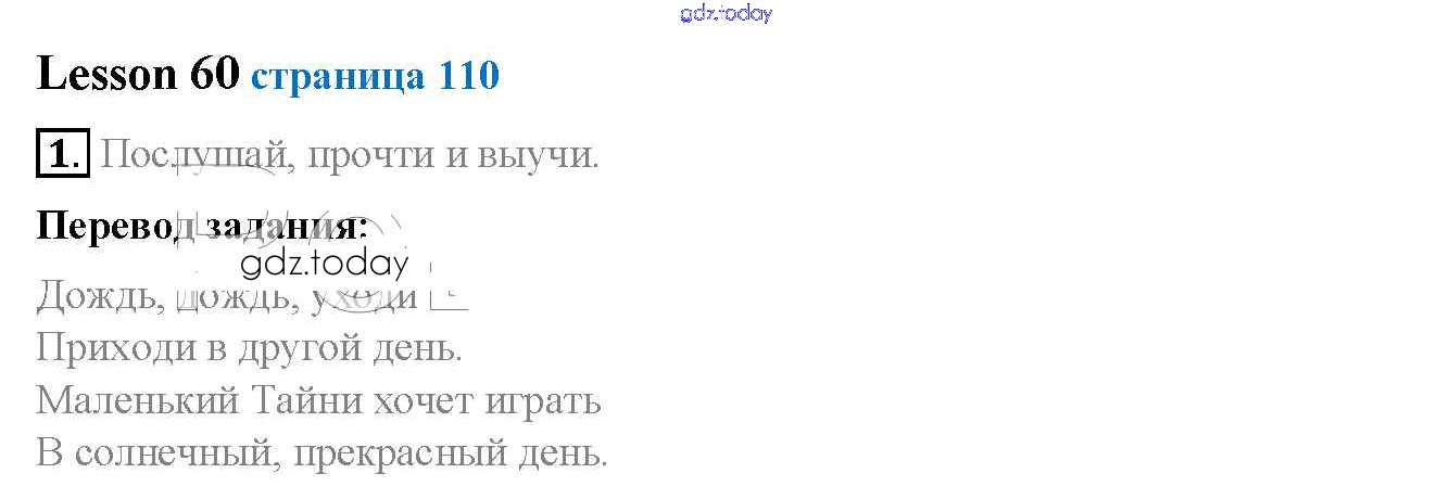 На страницах сайта gdz.today вы найдете учебный и вспомогательный материал, направленный на улучшения знаний школьной программы. ГДЗ - онлайн мир знаний Решение. Страницы 110 Учебнику по Английскому языку для 3 класса Биболетова, Денисенко Аст/Астрель Enjoy English 2016