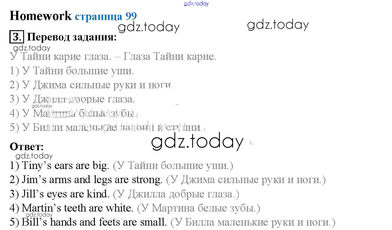 Ответы к Решение. Страницы 99 Учебнику по Английскому языку для 3 класса Биболетова, Денисенко Аст/Астрель Enjoy English 2016