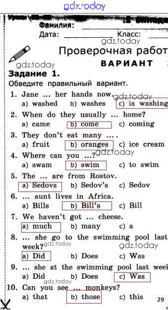 На страницах сайта gdz.today вы найдете учебный и вспомогательный материал, направленный на улучшения знаний школьной программы. ГДЗ - онлайн мир знаний Страницы (решение) 29 Проверочным работам по Английскому языку для 3 класса Барашкова Экзамен УМК 2016
