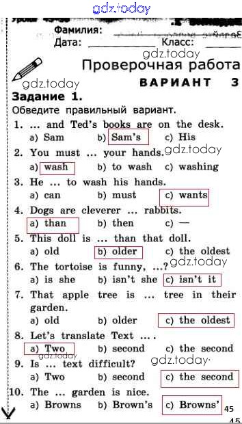 Ответы к Страницы (решение) 45 Проверочным работам по Английскому языку для 3 класса Барашкова Экзамен УМК 2016