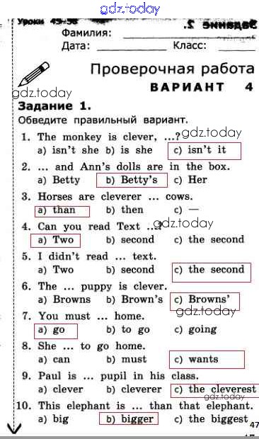 Ответы к Страницы (решение) 47 Проверочным работам по Английскому языку для 3 класса Барашкова Экзамен УМК 2016