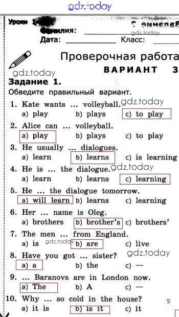 Ответы к Страницы (решение) 5 Проверочным работам по Английскому языку для 3 класса Барашкова Экзамен УМК 2016