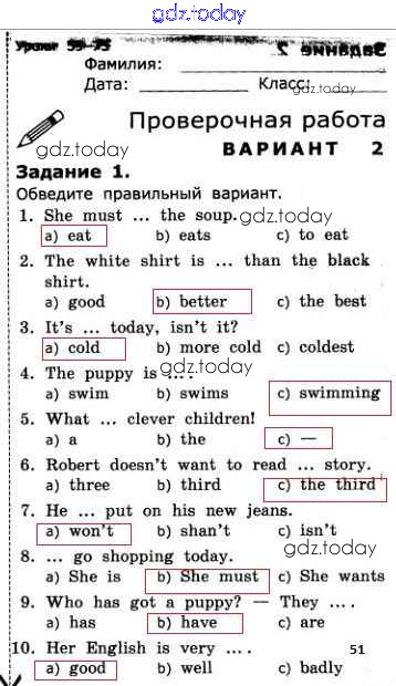 На страницах сайта gdz.today вы найдете учебный и вспомогательный материал, направленный на улучшения знаний школьной программы. ГДЗ - онлайн мир знаний Страницы (решение) 51 Проверочным работам по Английскому языку для 3 класса Барашкова Экзамен УМК 2016