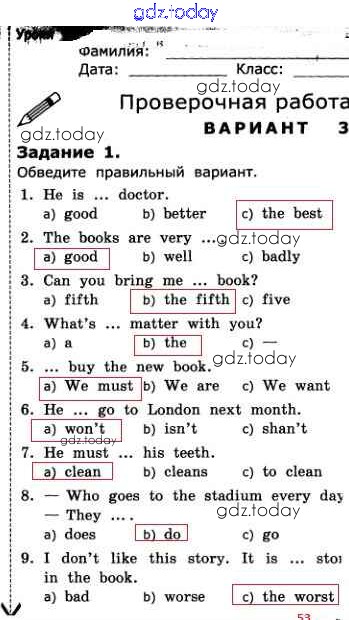 На страницах сайта gdz.today вы найдете учебный и вспомогательный материал, направленный на улучшения знаний школьной программы. ГДЗ - онлайн мир знаний Страницы (решение) 53 Проверочным работам по Английскому языку для 3 класса Барашкова Экзамен УМК 2016