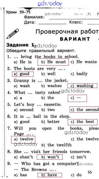 На страницах сайта gdz.today вы найдете учебный и вспомогательный материал, направленный на улучшения знаний школьной программы. ГДЗ - онлайн мир знаний Страницы (решение) 55 Проверочным работам по Английскому языку для 3 класса Барашкова Экзамен УМК 2016