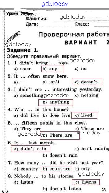 На страницах сайта gdz.today вы найдете учебный и вспомогательный материал, направленный на улучшения знаний школьной программы. ГДЗ - онлайн мир знаний Страницы (решение) 58 Проверочным работам по Английскому языку для 3 класса Барашкова Экзамен УМК 2016