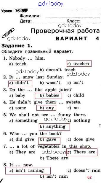 Ответы к Страницы (решение) 62 Проверочным работам по Английскому языку для 3 класса Барашкова Экзамен УМК 2016