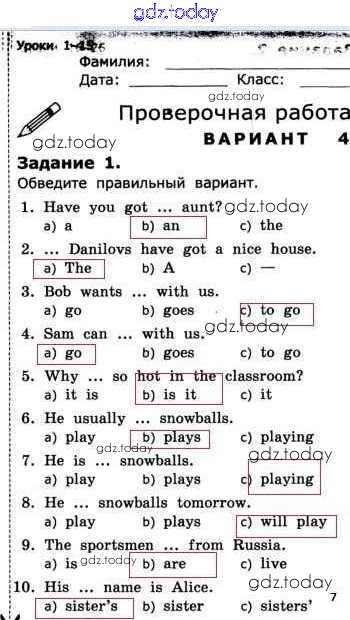 Ответы к Страницы (решение) 7 Проверочным работам по Английскому языку для 3 класса Барашкова Экзамен УМК 2016
