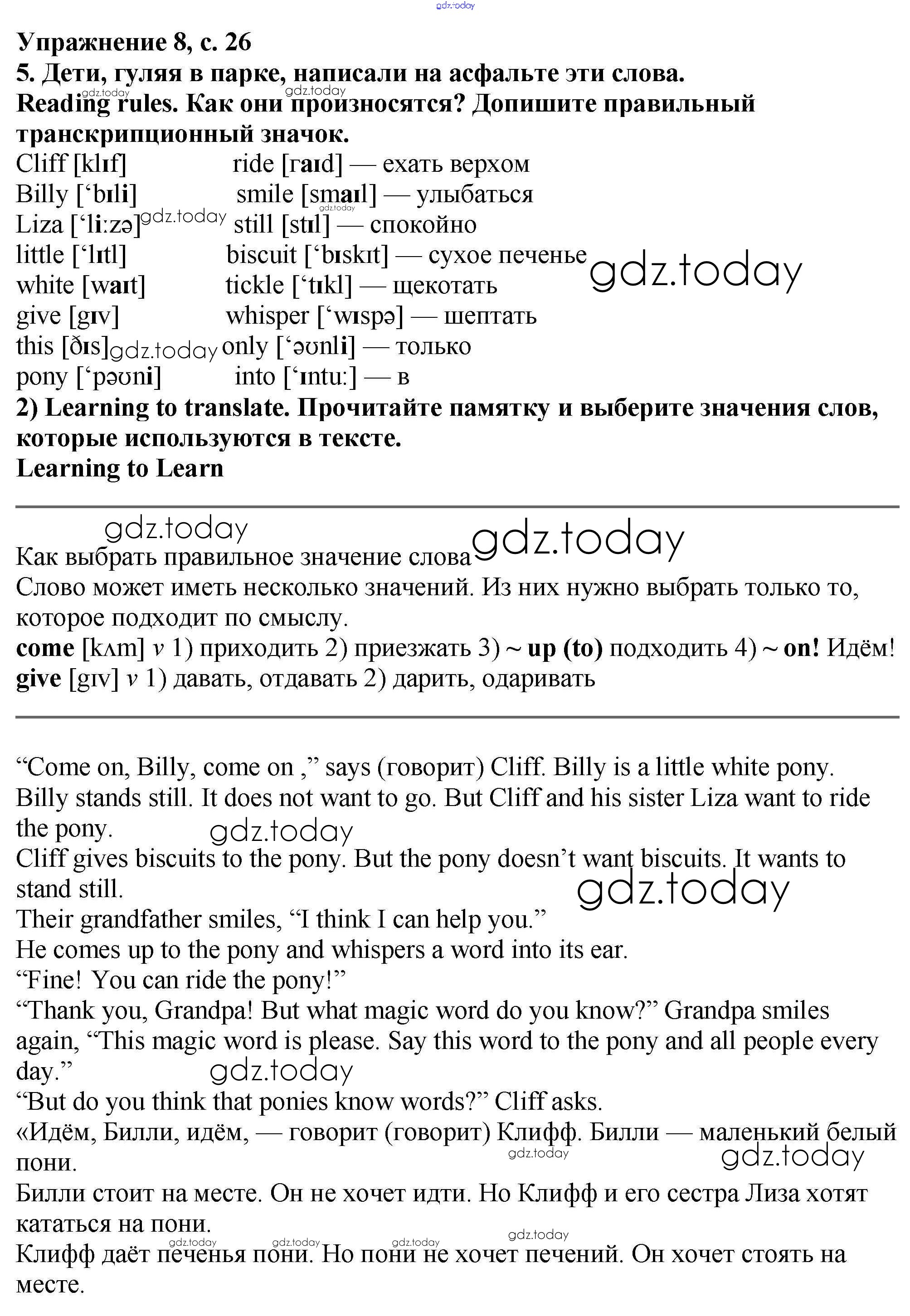 На страницах сайта gdz.today вы найдете учебный и вспомогательный материал, направленный на улучшения знаний школьной программы. ГДЗ - онлайн мир знаний Решение к Unit 2 8 Книге для чтения по Английскому языку для 3 класса Кузовлев, Лапа Просвещение 2015