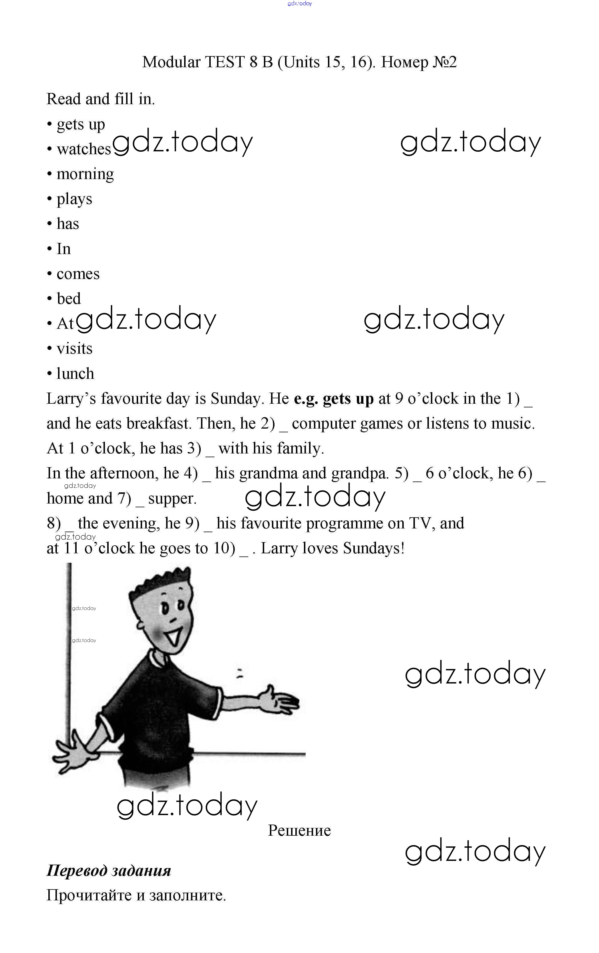 На страницах сайта gdz.today вы найдете учебный и вспомогательный материал, направленный на улучшения знаний школьной программы. ГДЗ - онлайн мир знаний Решение к тесту 8 B Контрольным заданиям по Английскому языку для 3 класса Быкова, Эванс Просвещение Spotlight 2021