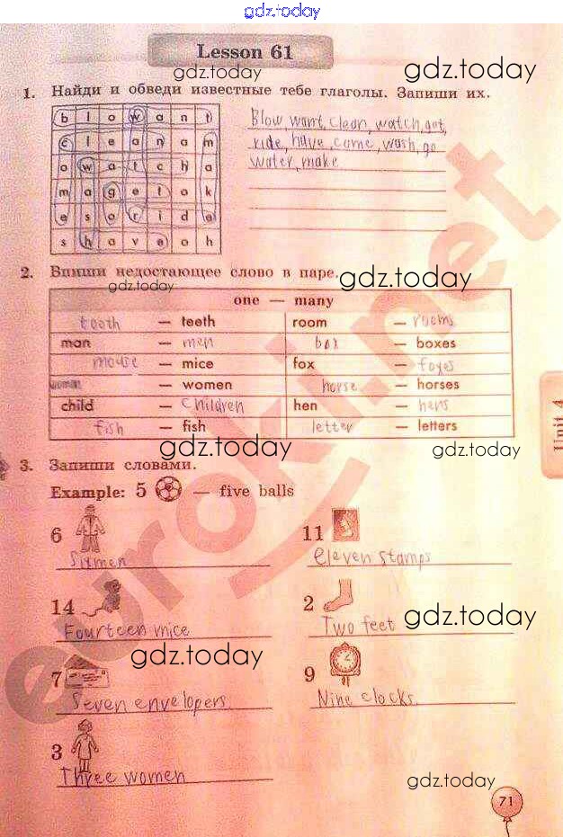 На страницах сайта gdz.today вы найдете учебный и вспомогательный материал, направленный на улучшения знаний школьной программы. ГДЗ - онлайн мир знаний Страницы (решение) 71 Рабочей тетради по Английскому языку для 3 класса Биболетова, Денисенко Титул Enjoy English 2015