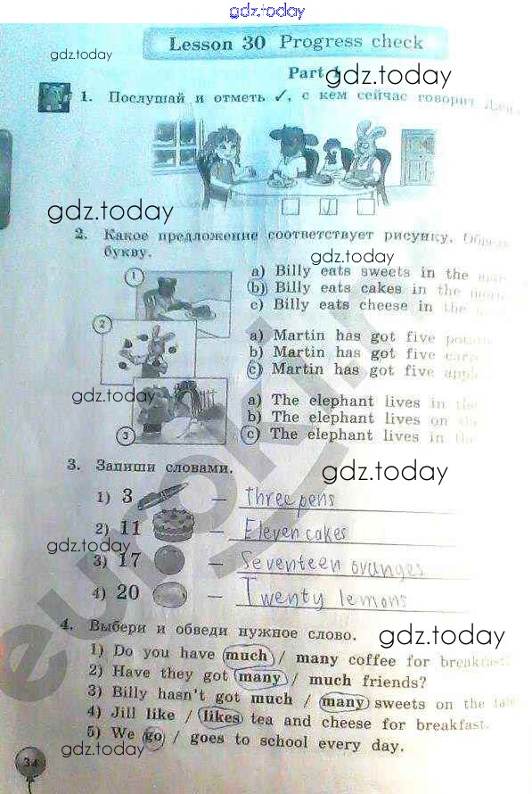На страницах сайта gdz.today вы найдете учебный и вспомогательный материал, направленный на улучшения знаний школьной программы. ГДЗ - онлайн мир знаний Страницы (решение) 34 Рабочей тетради по Английскому языку для 3 класса Биболетова, Денисенко Титул Enjoy English 2015