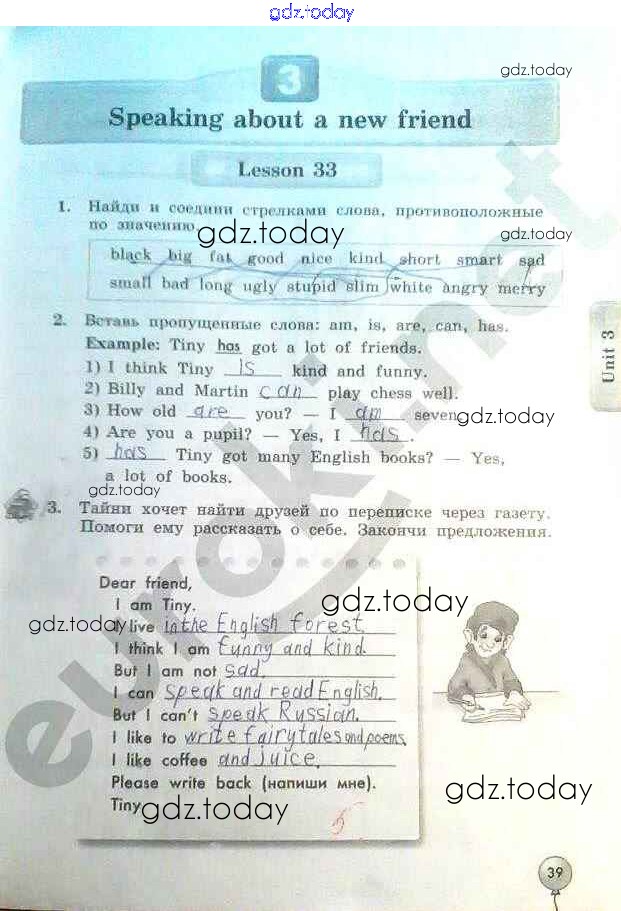 На страницах сайта gdz.today вы найдете учебный и вспомогательный материал, направленный на улучшения знаний школьной программы. ГДЗ - онлайн мир знаний Страницы (решение) 39 Рабочей тетради по Английскому языку для 3 класса Биболетова, Денисенко Титул Enjoy English 2015