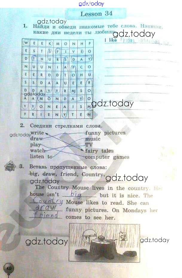 На страницах сайта gdz.today вы найдете учебный и вспомогательный материал, направленный на улучшения знаний школьной программы. ГДЗ - онлайн мир знаний Страницы (решение) 40 Рабочей тетради по Английскому языку для 3 класса Биболетова, Денисенко Титул Enjoy English 2015