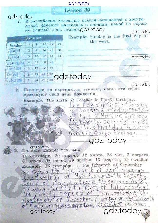На страницах сайта gdz.today вы найдете учебный и вспомогательный материал, направленный на улучшения знаний школьной программы. ГДЗ - онлайн мир знаний Страницы (решение) 45 Рабочей тетради по Английскому языку для 3 класса Биболетова, Денисенко Титул Enjoy English 2015