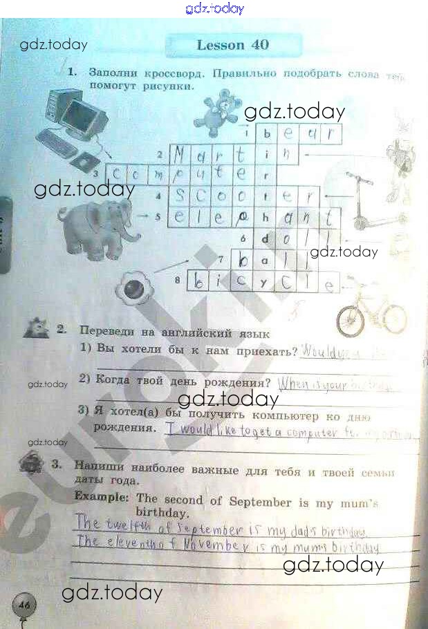 На страницах сайта gdz.today вы найдете учебный и вспомогательный материал, направленный на улучшения знаний школьной программы. ГДЗ - онлайн мир знаний Страницы (решение) 46 Рабочей тетради по Английскому языку для 3 класса Биболетова, Денисенко Титул Enjoy English 2015