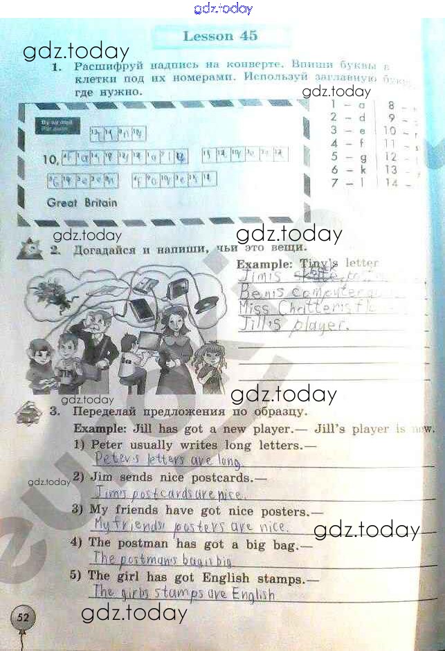 На страницах сайта gdz.today вы найдете учебный и вспомогательный материал, направленный на улучшения знаний школьной программы. ГДЗ - онлайн мир знаний Страницы (решение) 52 Рабочей тетради по Английскому языку для 3 класса Биболетова, Денисенко Титул Enjoy English 2015