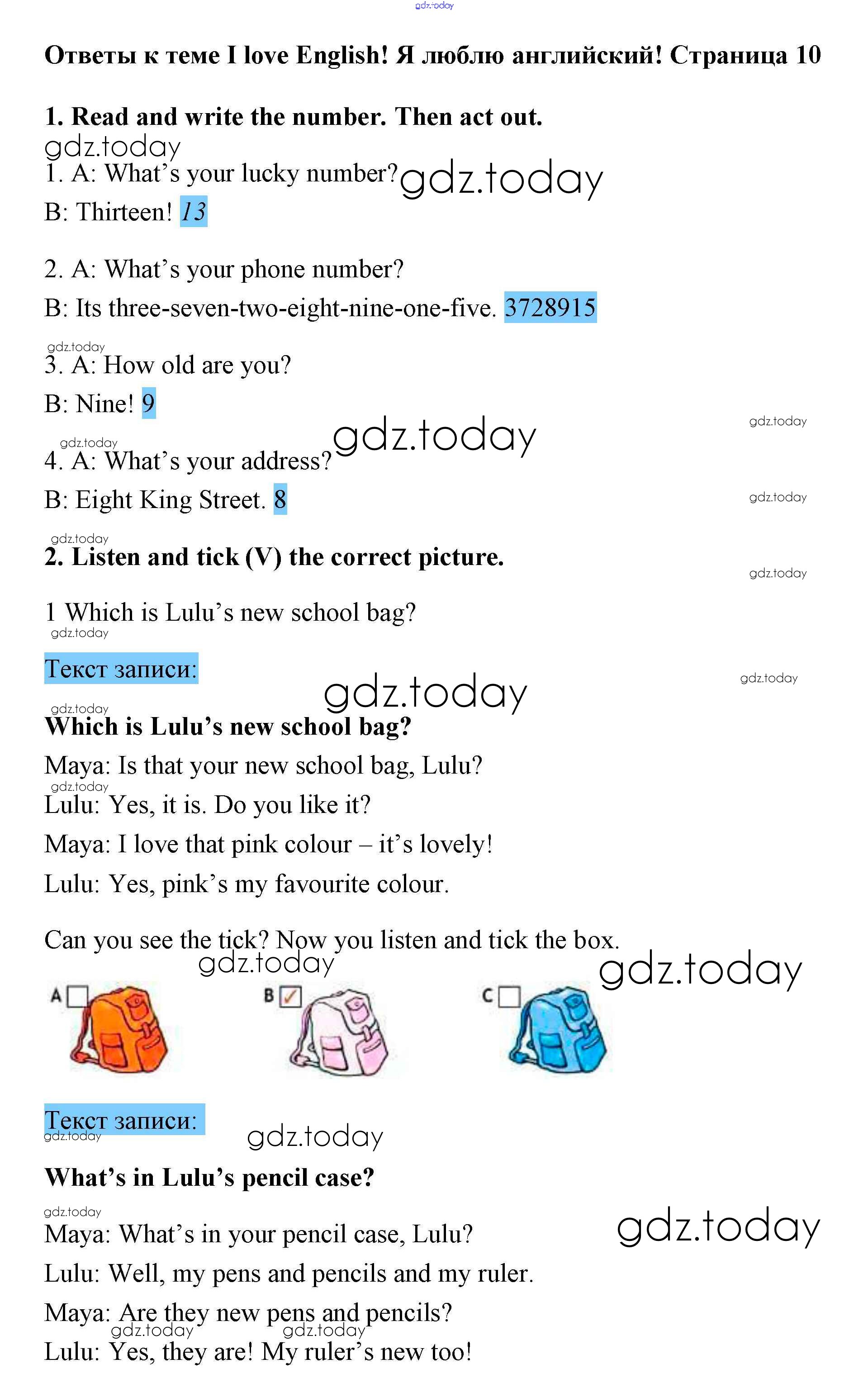 Ответы к Решение. Страницы 10-11 Рабочей тетради по Английскому языку для 3 класса Быкова, Эванс Просвещение Spotlight 2016