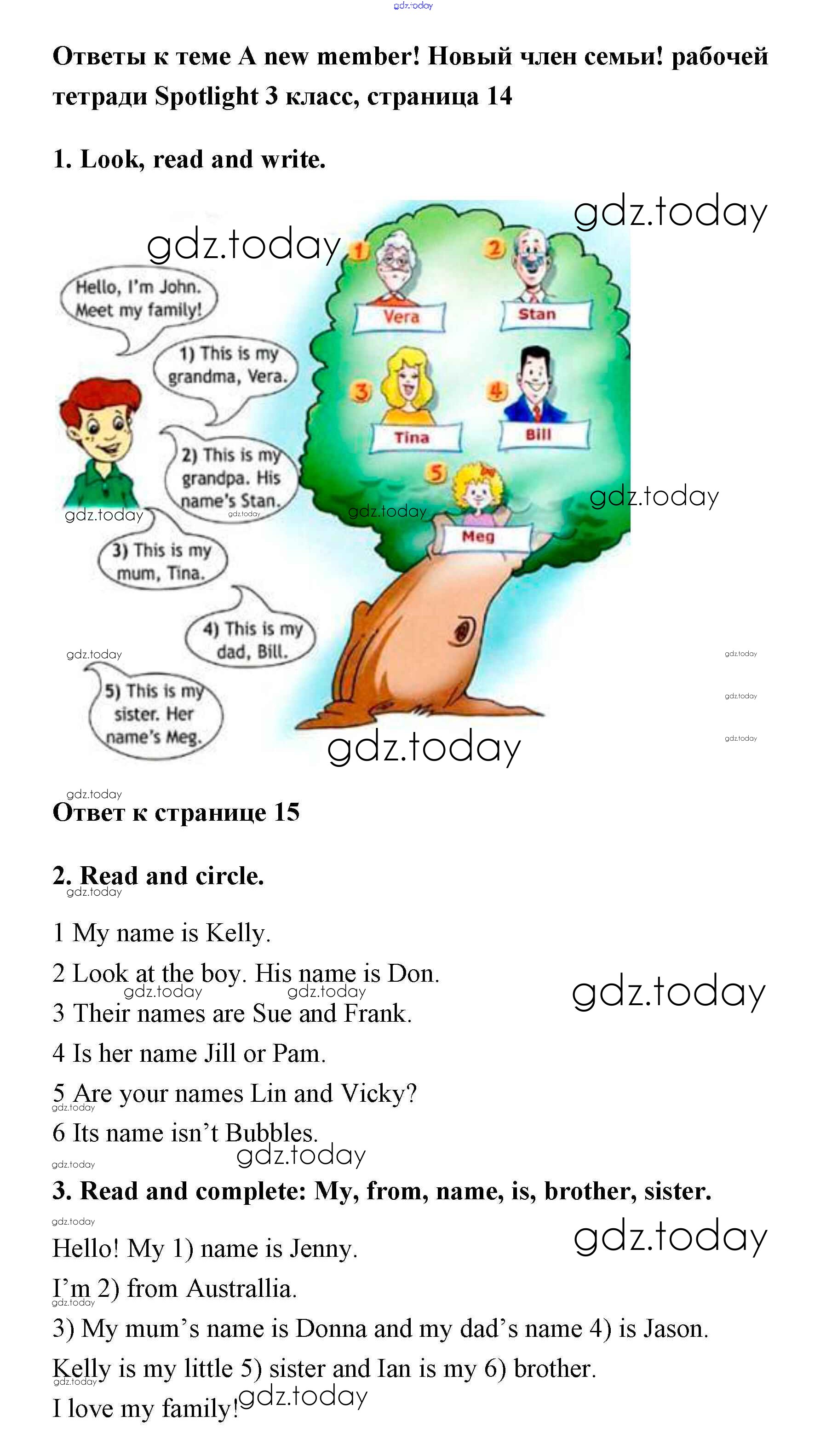 Ответы к Решение. Страницы 14-15 Рабочей тетради по Английскому языку для 3 класса Быкова, Эванс Просвещение Spotlight 2016