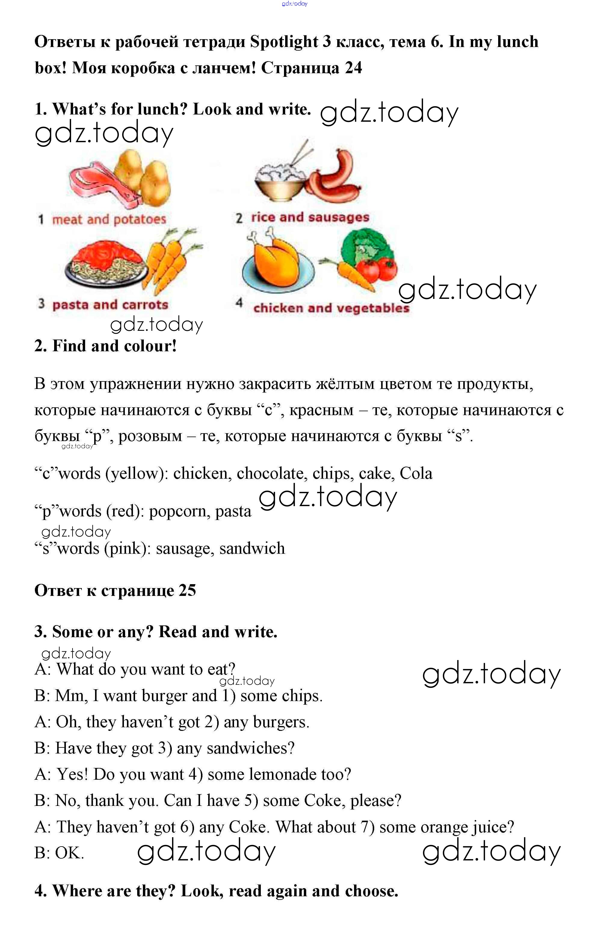 Ответы к Решение. Страницы 24-25 Рабочей тетради по Английскому языку для 3 класса Быкова, Эванс Просвещение Spotlight 2016