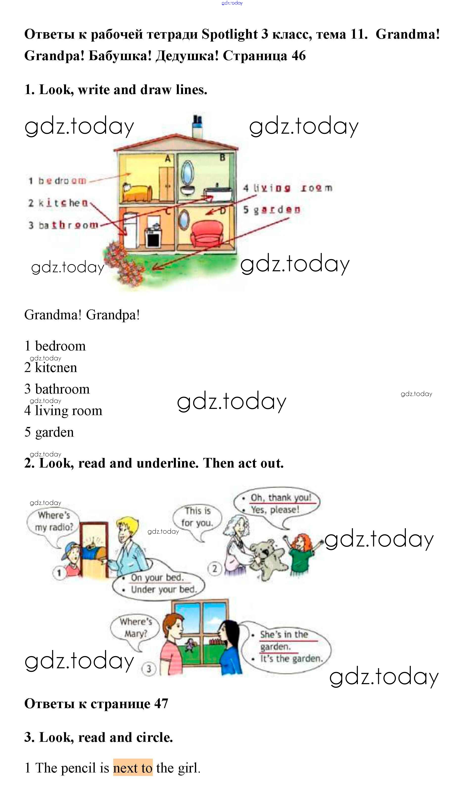 На страницах сайта gdz.today вы найдете учебный и вспомогательный материал, направленный на улучшения знаний школьной программы. ГДЗ - онлайн мир знаний Решение. Страницы 46-47 Рабочей тетради по Английскому языку для 3 класса Быкова, Эванс Просвещение Spotlight 2016