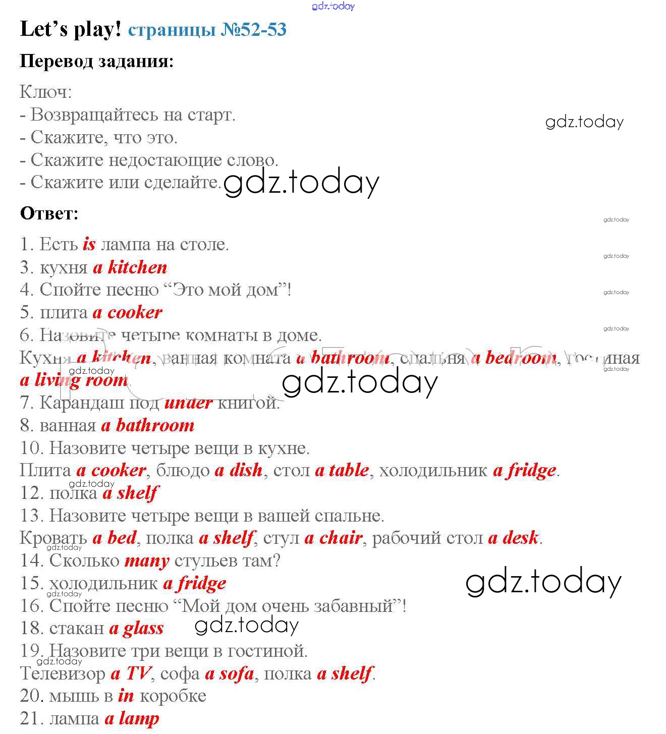 На страницах сайта gdz.today вы найдете учебный и вспомогательный материал, направленный на улучшения знаний школьной программы. ГДЗ - онлайн мир знаний Решение. Страницы 52-53 Рабочей тетради по Английскому языку для 3 класса Быкова, Эванс Просвещение Spotlight 2016