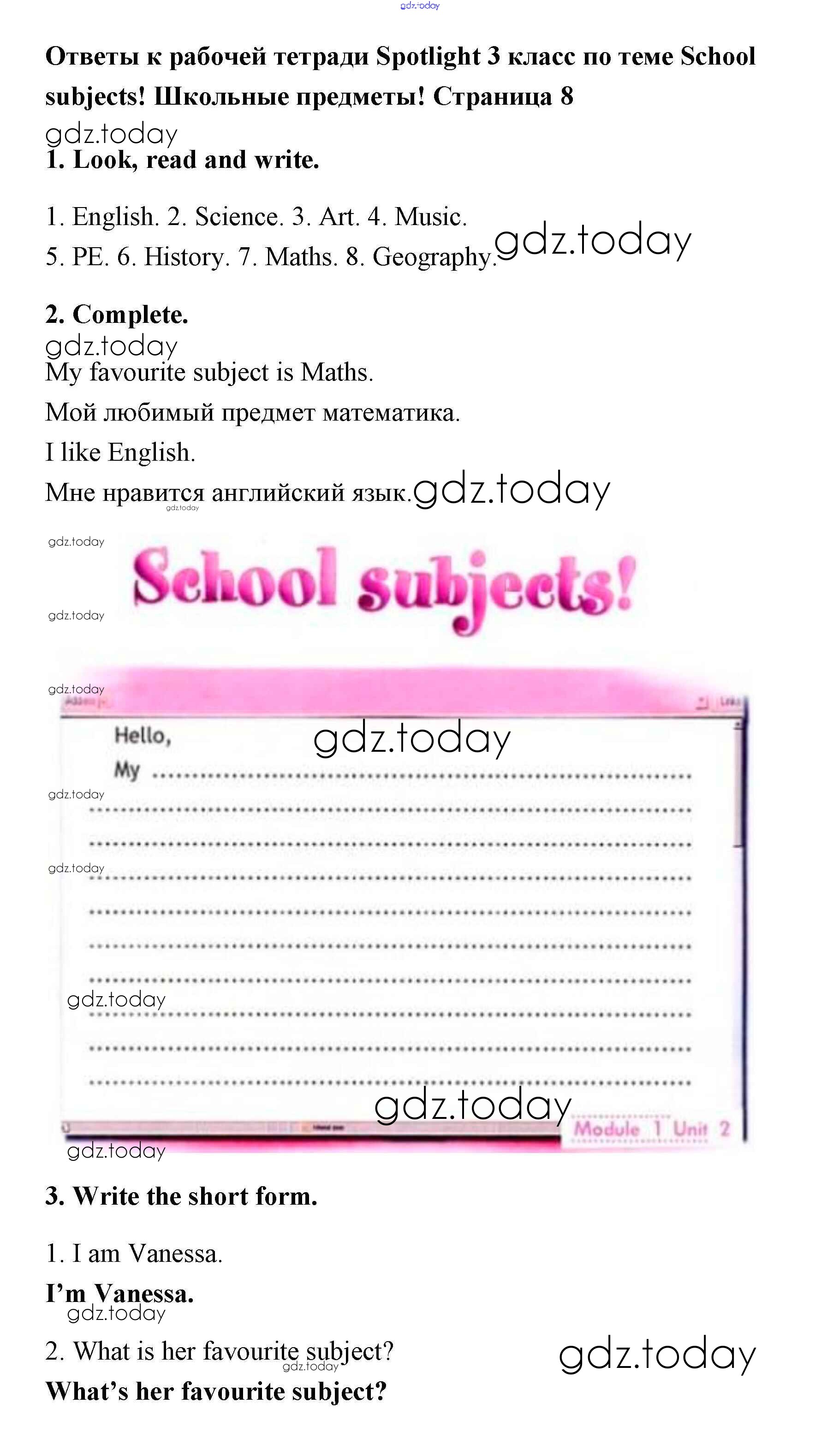 На страницах сайта gdz.today вы найдете учебный и вспомогательный материал, направленный на улучшения знаний школьной программы. ГДЗ - онлайн мир знаний Решение. Страницы 8-9 Рабочей тетради по Английскому языку для 3 класса Быкова, Эванс Просвещение Spotlight 2016