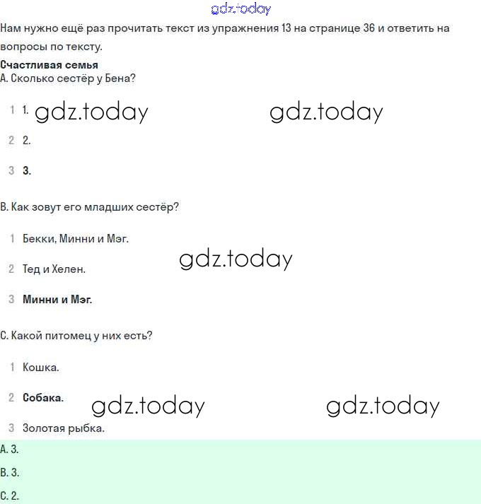 Ответы к Решение. Страницы 36 Сборнику упражнений по Английскому языку для 3 класса Быкова, Поспелова Просвещение Spotlight 2012