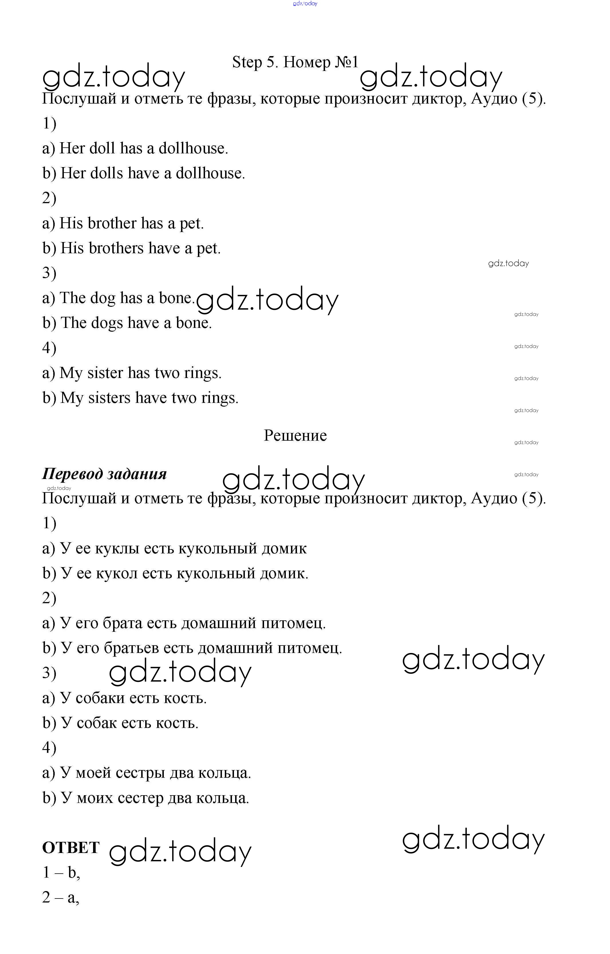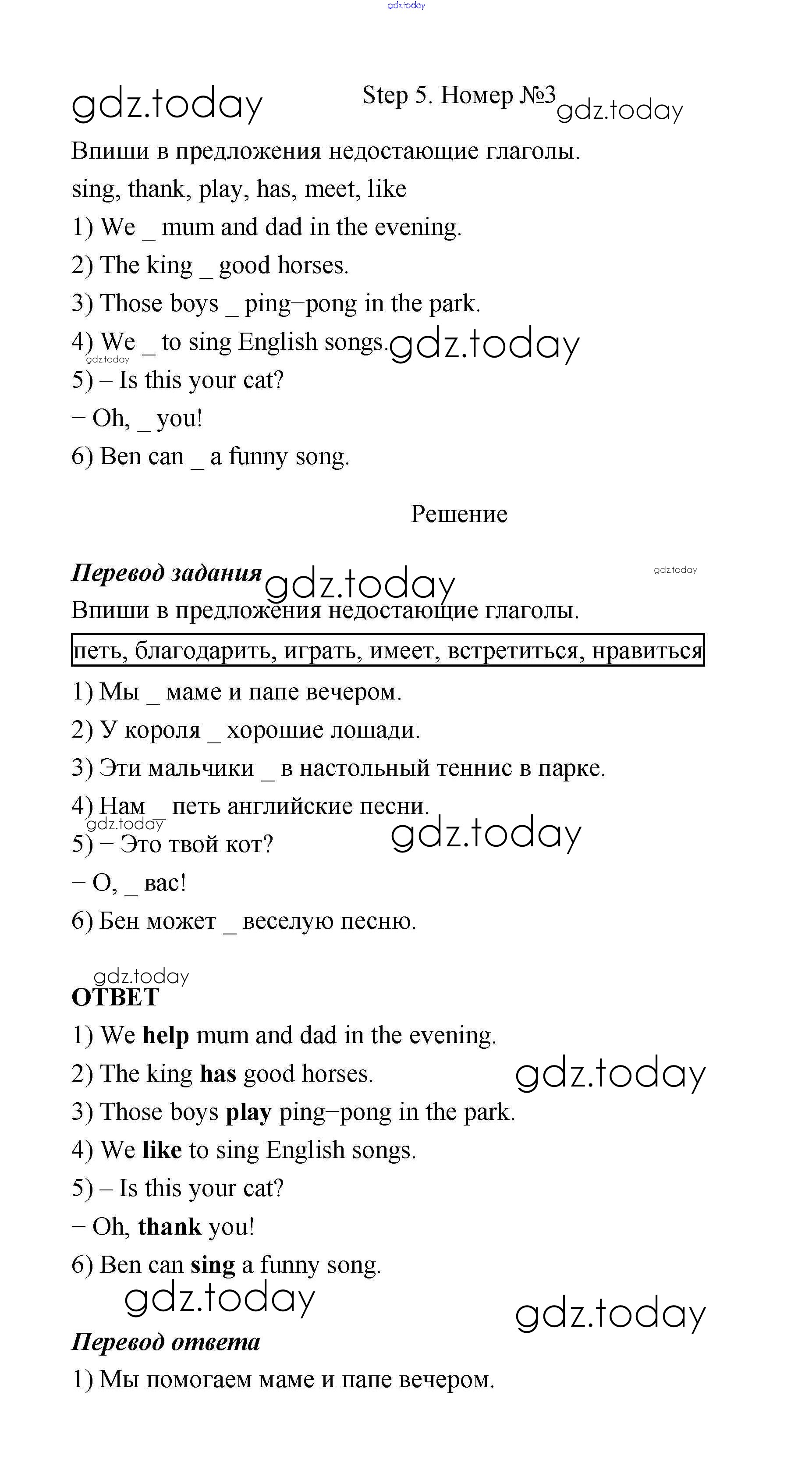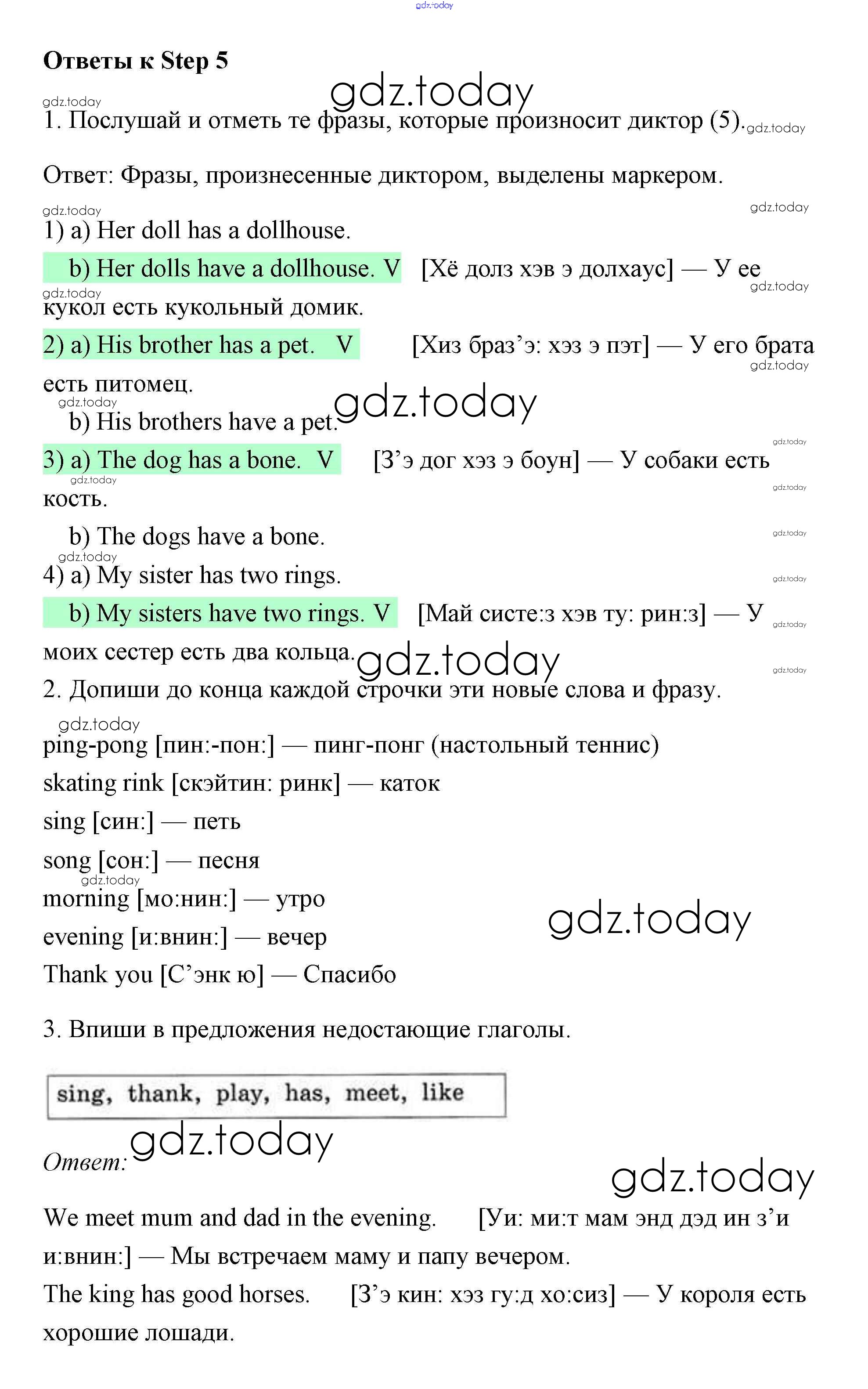 Ответы к Решение к Unit 1 (Step) Step 5 Рабочей тетради по Английскому языку для 3 класса Афанасьева, Михеева Дрофа Rainbow 2015