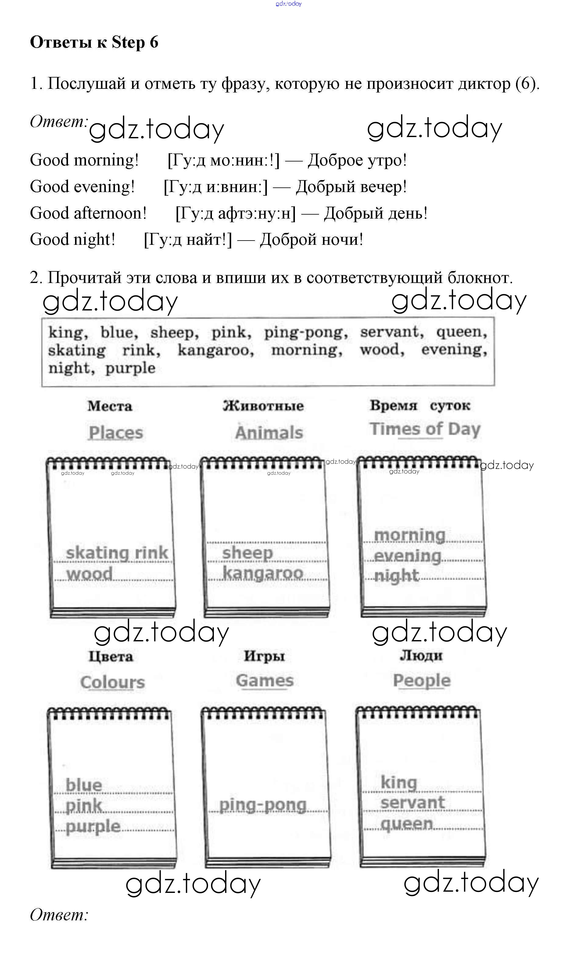 На страницах сайта gdz.today вы найдете учебный и вспомогательный материал, направленный на улучшения знаний школьной программы. ГДЗ - онлайн мир знаний Решение к Unit 1 (Step) Step 6 Рабочей тетради по Английскому языку для 3 класса Афанасьева, Михеева Дрофа Rainbow 2015