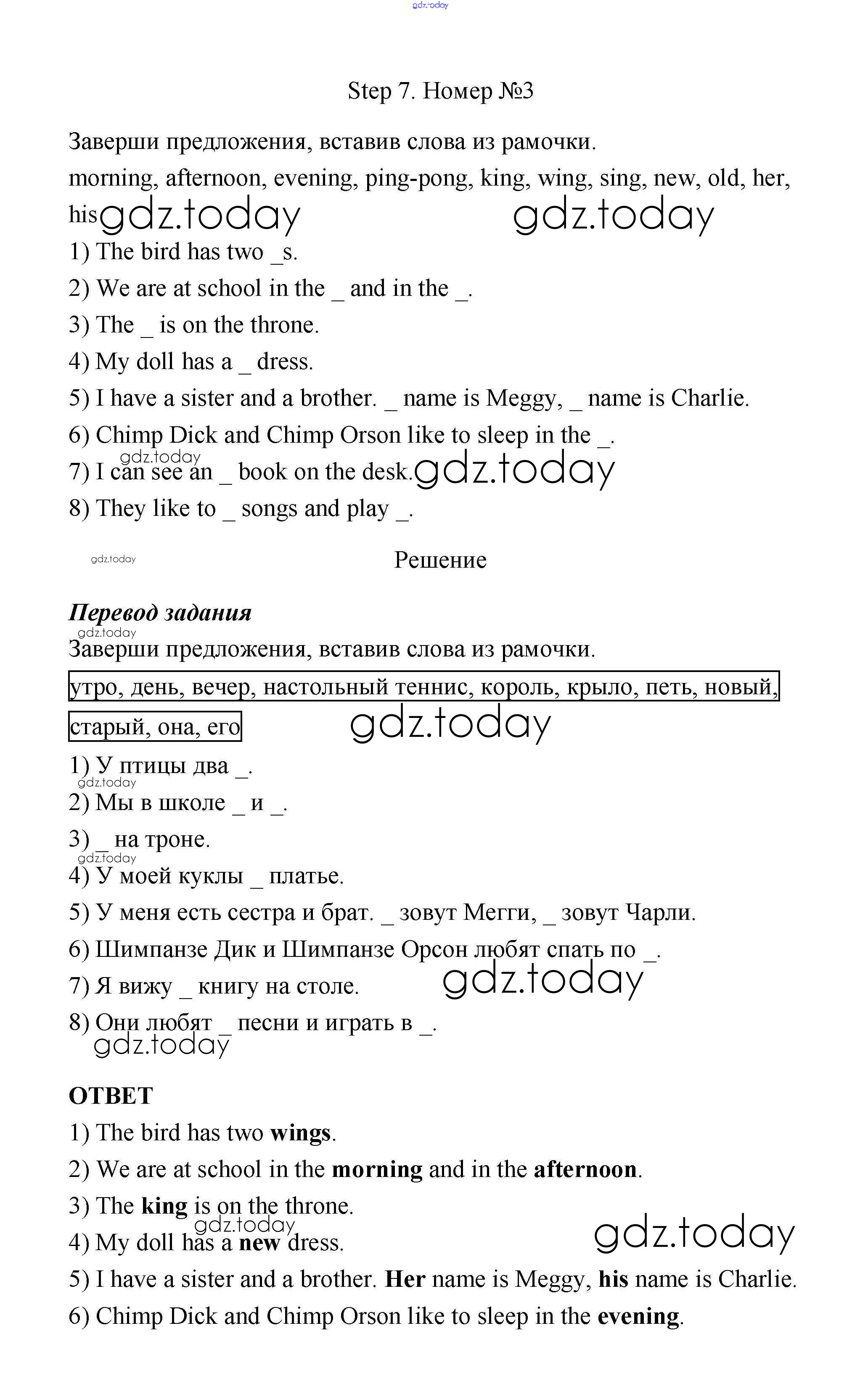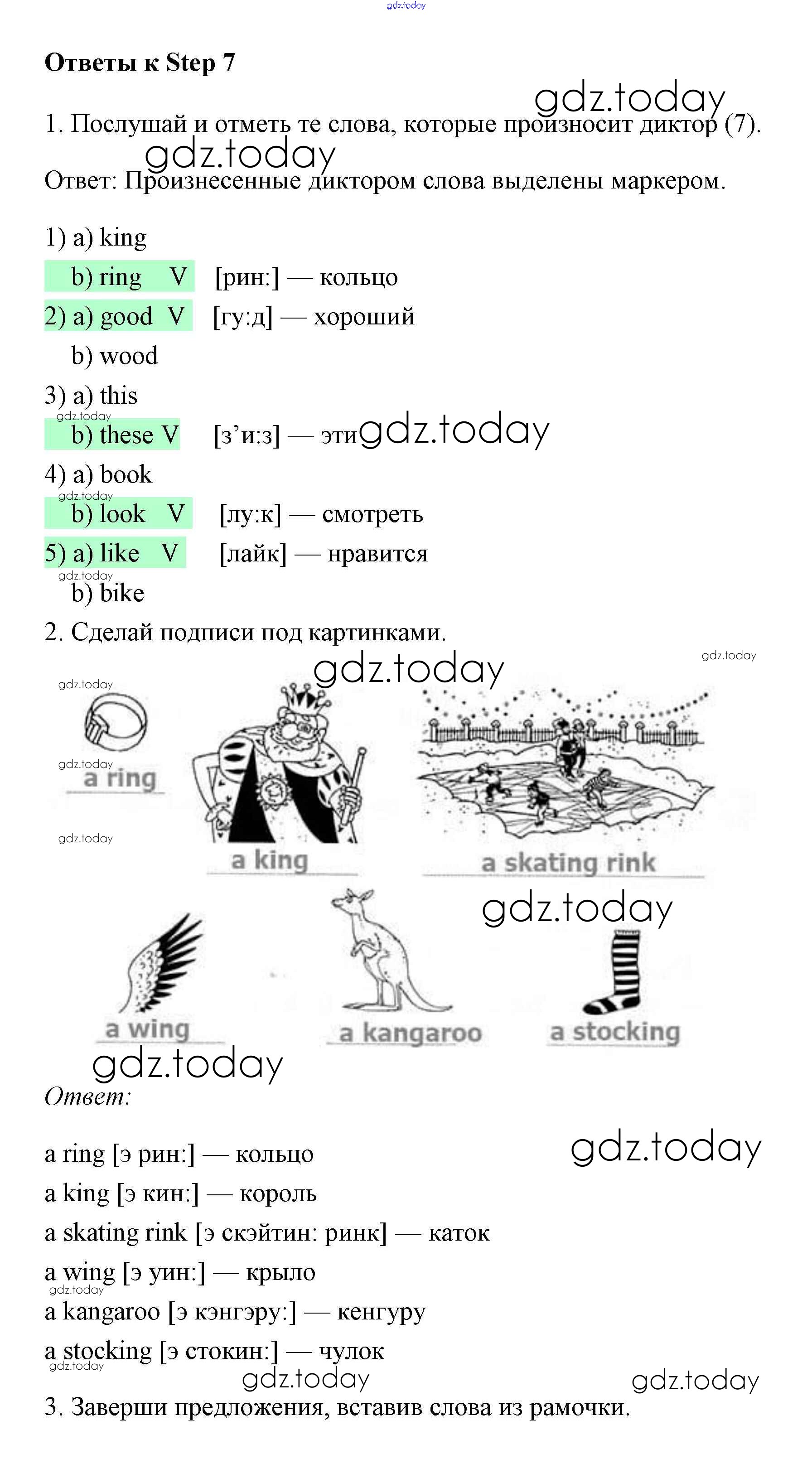 Ответы к Решение к Unit 1 (Step) Step 7 Рабочей тетради по Английскому языку для 3 класса Афанасьева, Михеева Дрофа Rainbow 2015