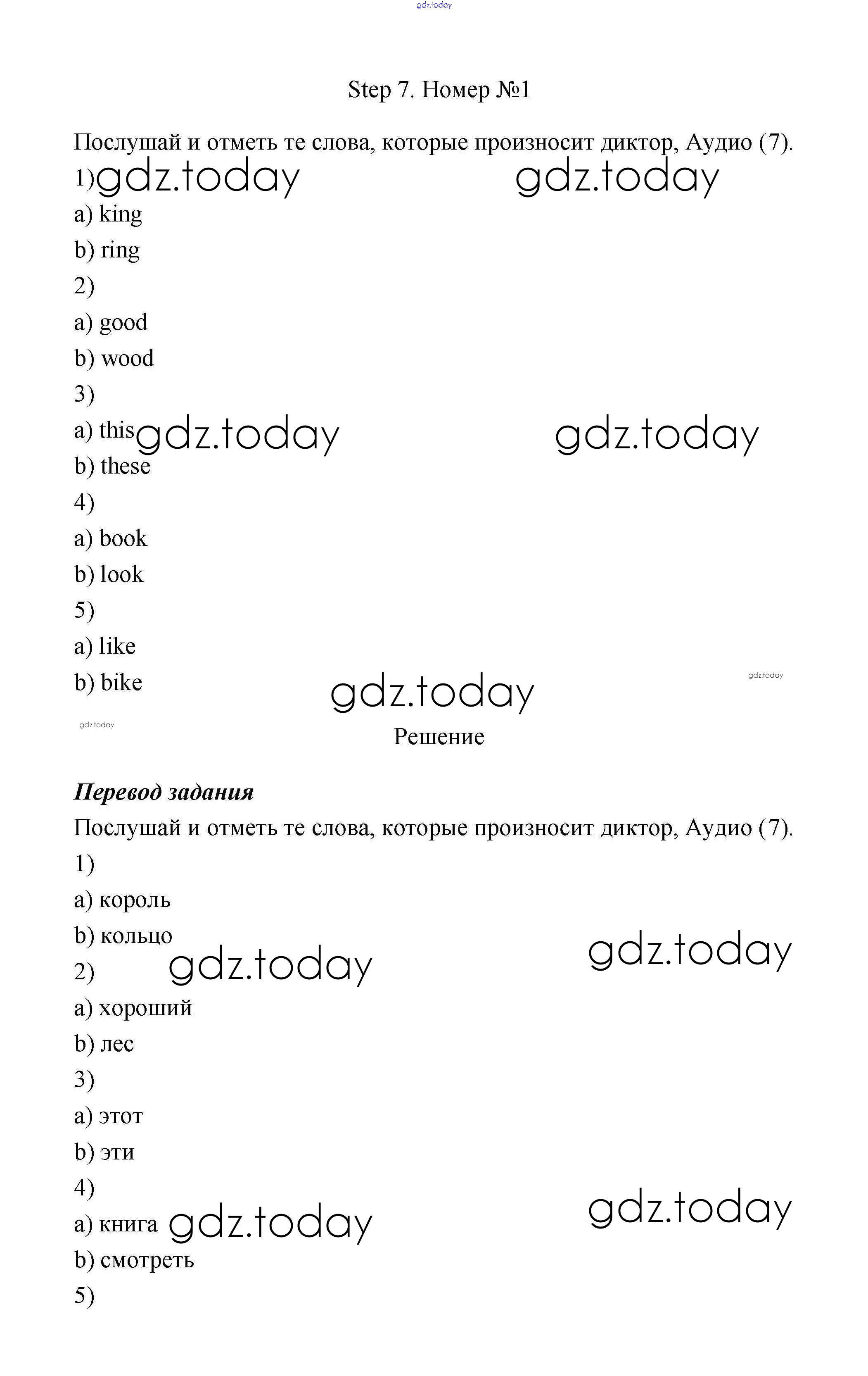 На страницах сайта gdz.today вы найдете учебный и вспомогательный материал, направленный на улучшения знаний школьной программы. ГДЗ - онлайн мир знаний Решение к Unit 1 (Step) Step 7 Рабочей тетради по Английскому языку для 3 класса Афанасьева, Михеева Дрофа Rainbow 2015