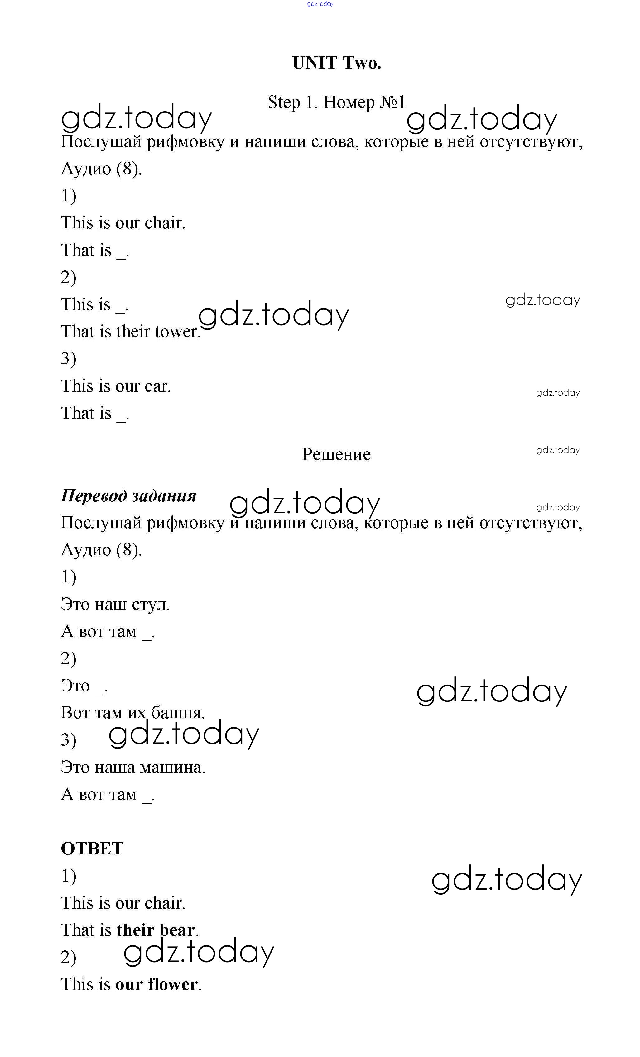 На страницах сайта gdz.today вы найдете учебный и вспомогательный материал, направленный на улучшения знаний школьной программы. ГДЗ - онлайн мир знаний Решение к Unit 2 (Step) Step 1 Рабочей тетради по Английскому языку для 3 класса Афанасьева, Михеева Дрофа Rainbow 2015
