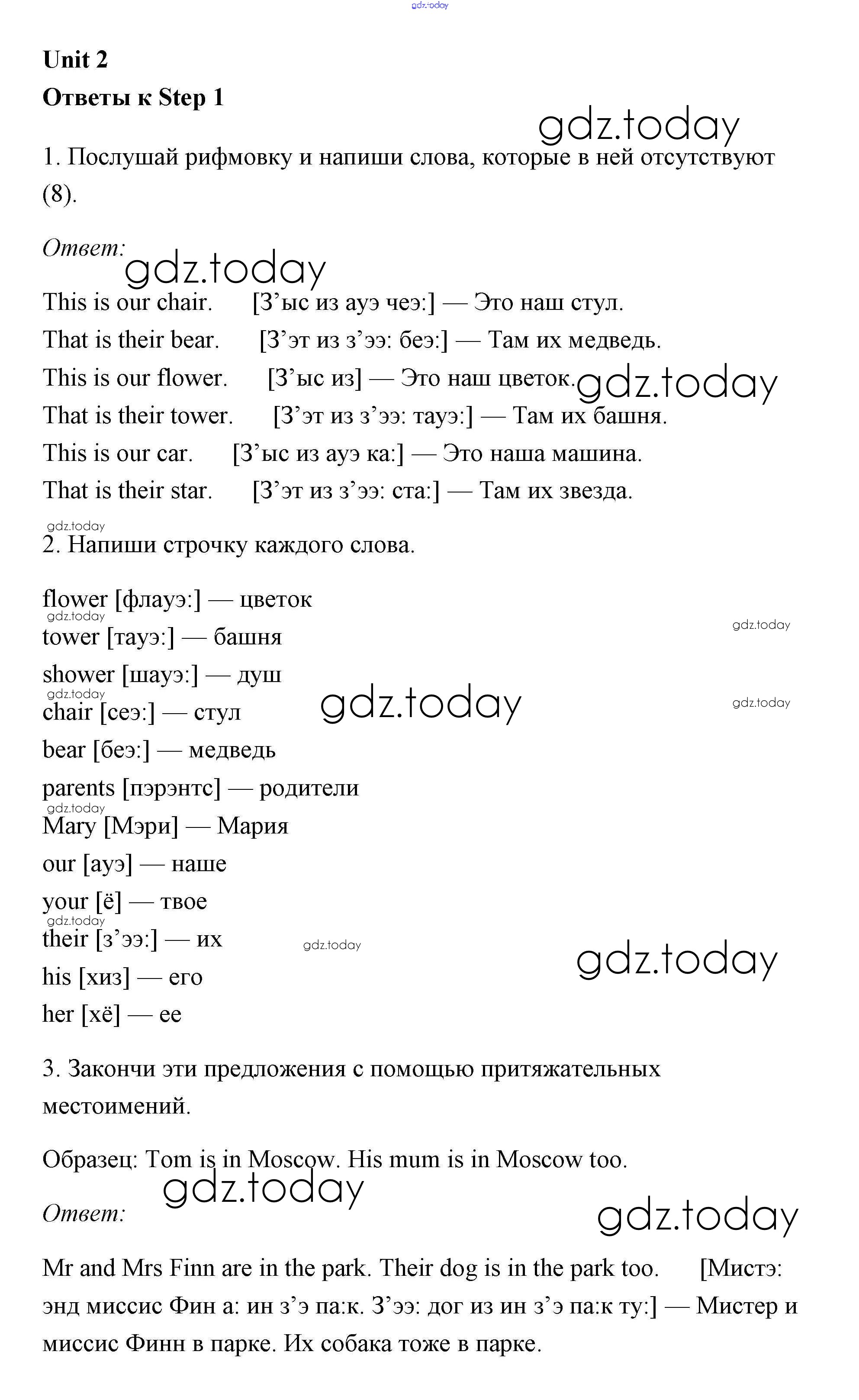 Ответы к Решение к Unit 2 (Step) Step 1 Рабочей тетради по Английскому языку для 3 класса Афанасьева, Михеева Дрофа Rainbow 2015