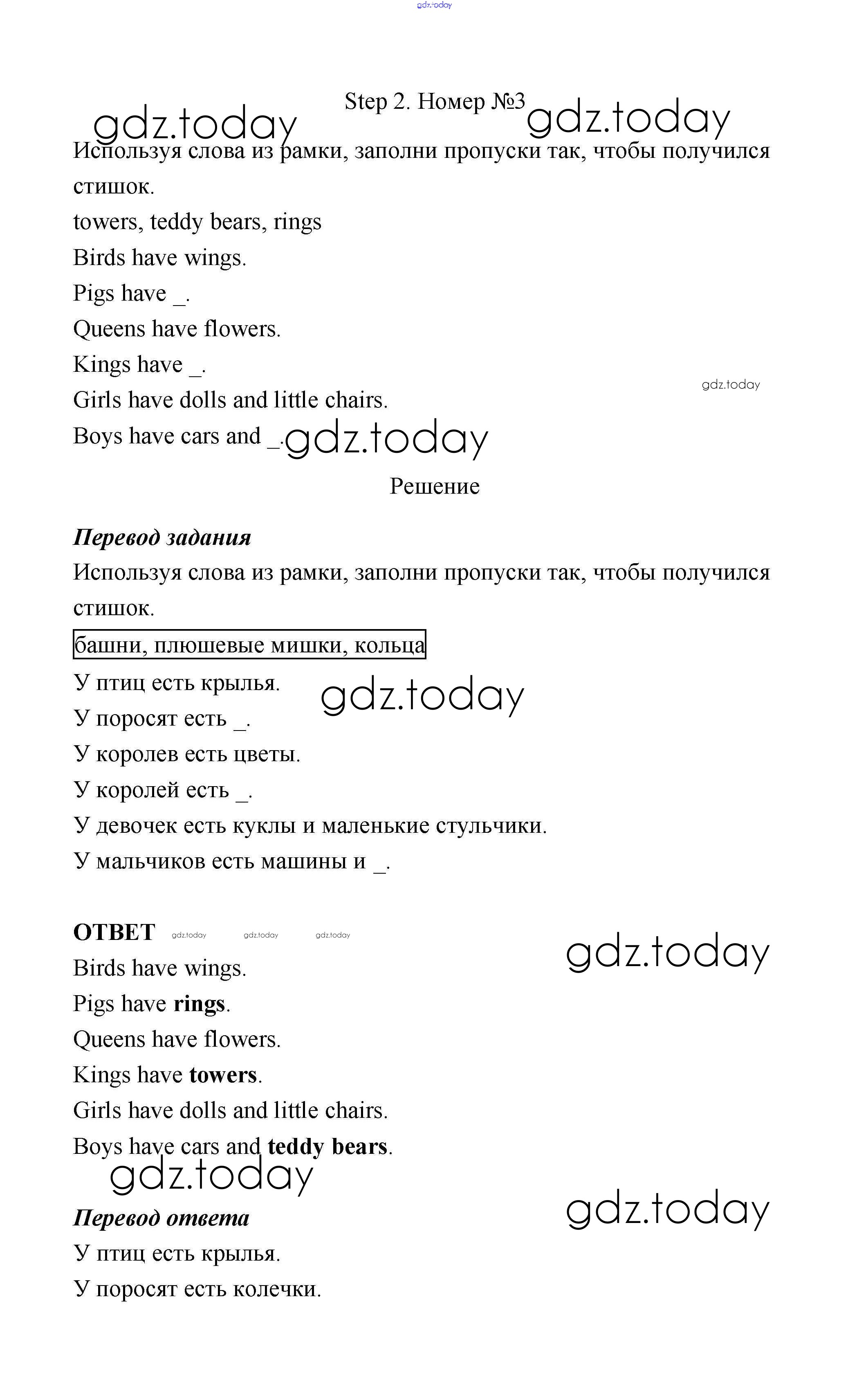 Ответы к Решение к Unit 2 (Step) Step 2 Рабочей тетради по Английскому языку для 3 класса Афанасьева, Михеева Дрофа Rainbow 2015