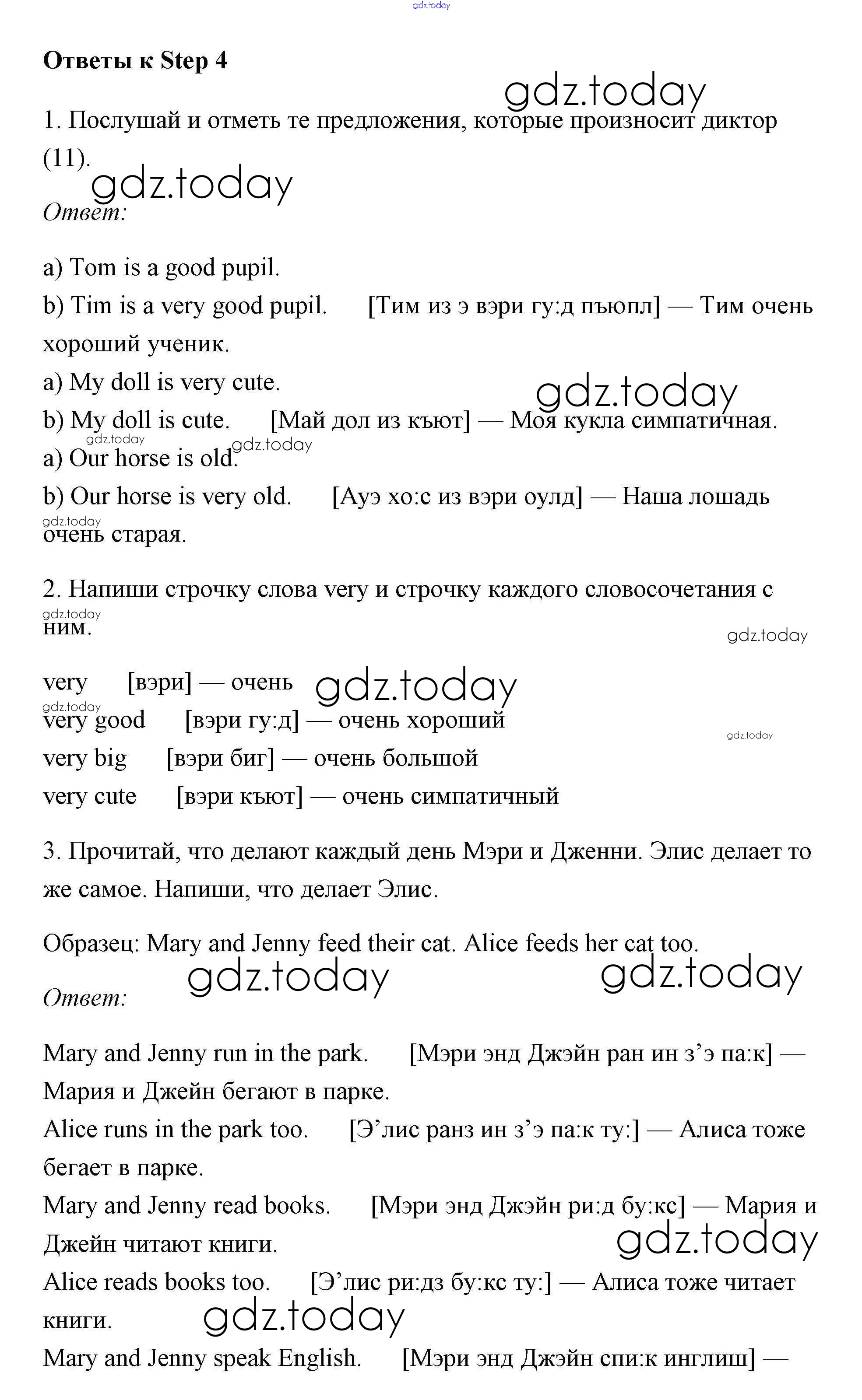 Ответы к Решение к Unit 2 (Step) Step 4 Рабочей тетради по Английскому языку для 3 класса Афанасьева, Михеева Дрофа Rainbow 2015