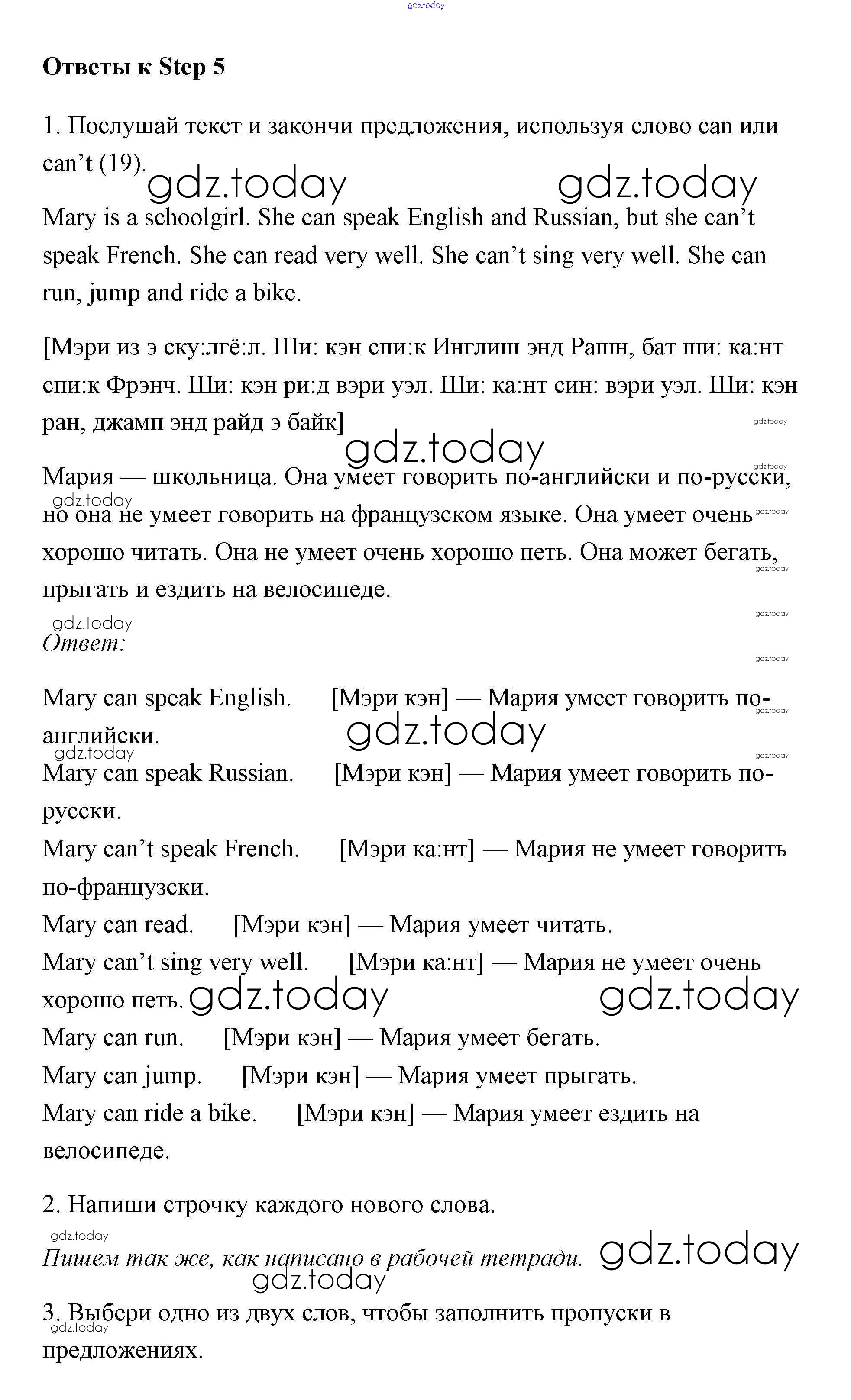 Ответы к Решение к Unit 3 (Step) Step 5 Рабочей тетради по Английскому языку для 3 класса Афанасьева, Михеева Дрофа Rainbow 2015