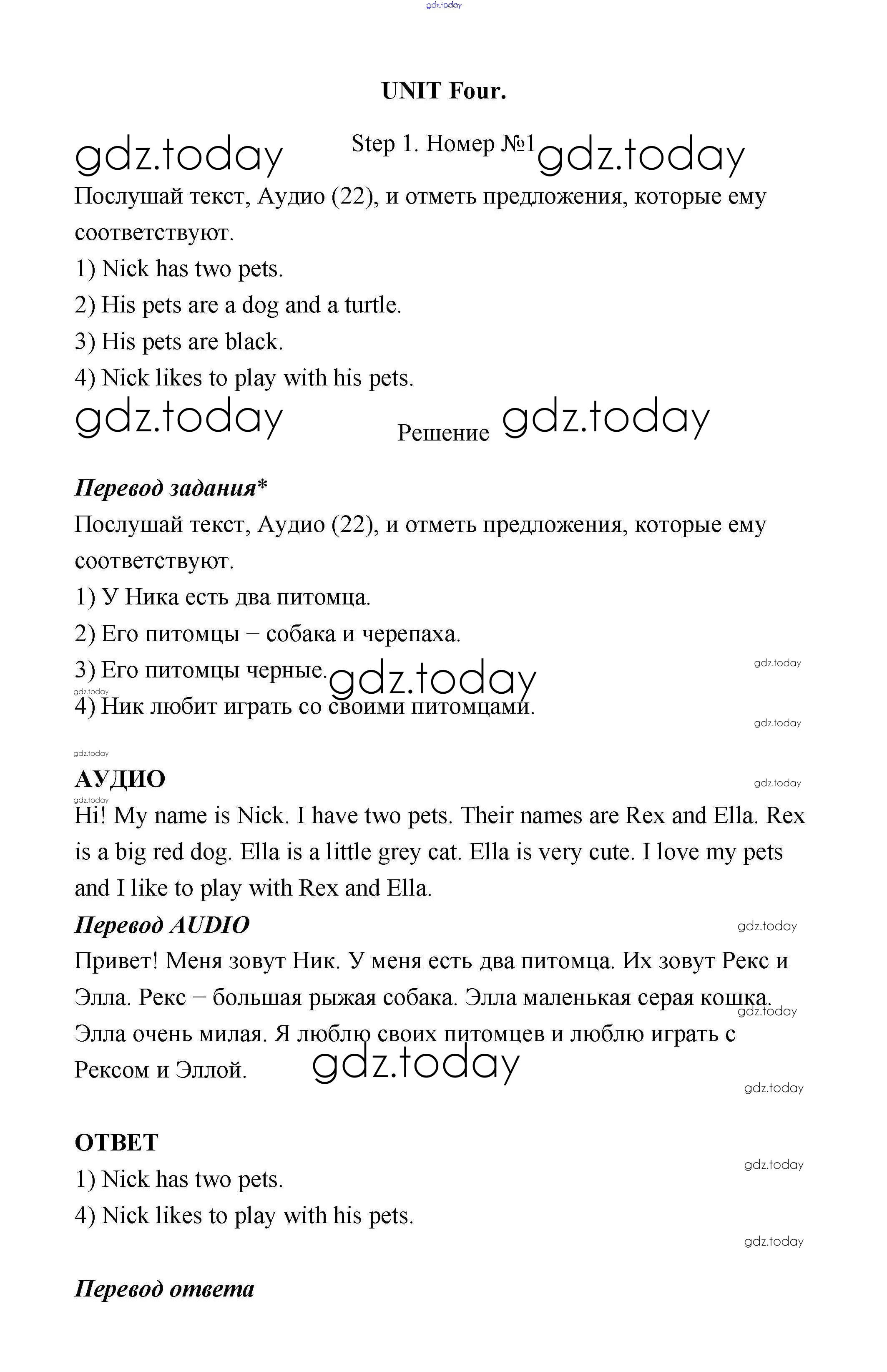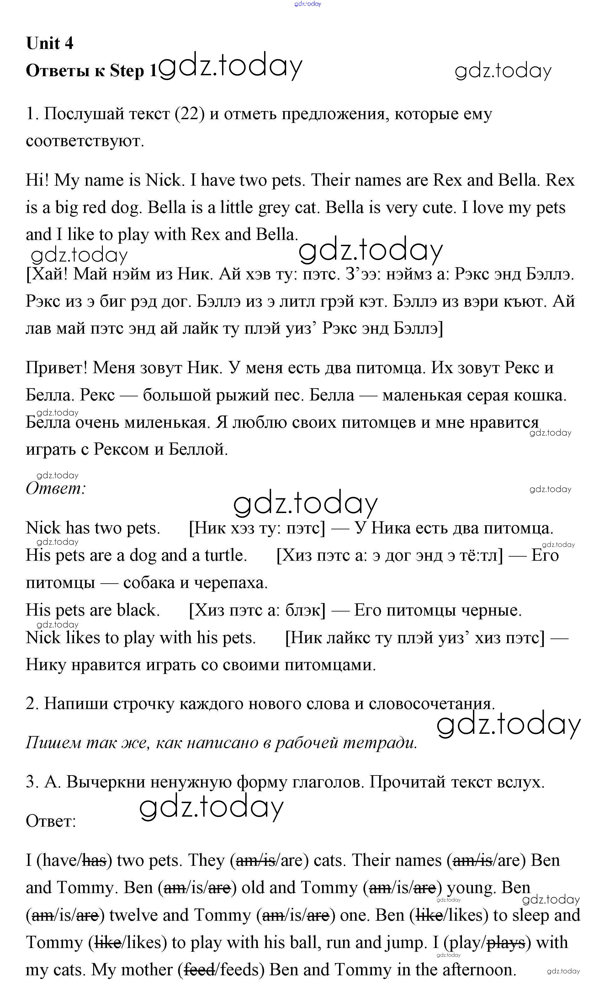 Ответы к Решение к Unit 4 (Step) Step 1 Рабочей тетради по Английскому языку для 3 класса Афанасьева, Михеева Дрофа Rainbow 2015