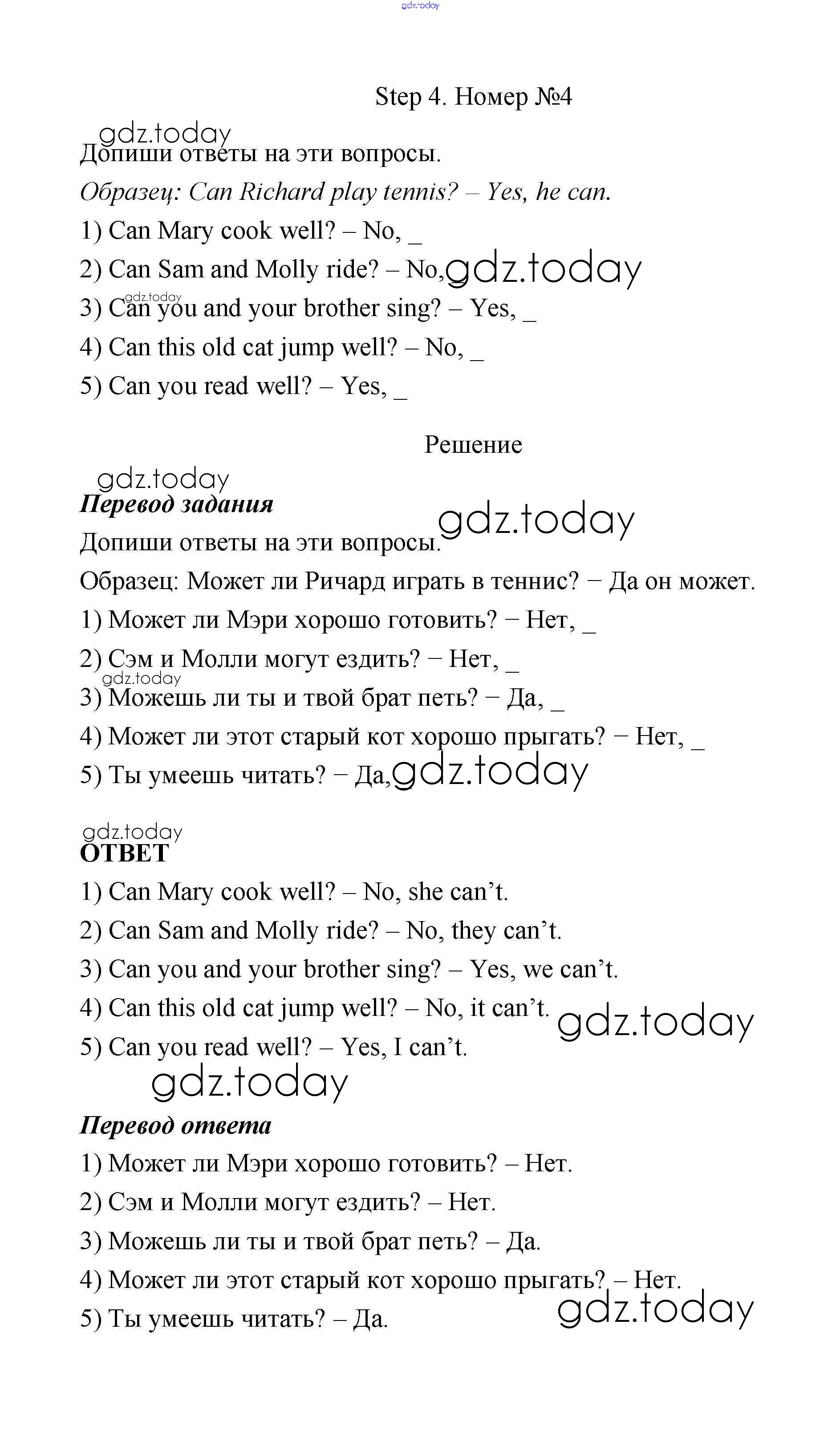 Ответы к Решение к Unit 4 (Step) Step 4 Рабочей тетради по Английскому языку для 3 класса Афанасьева, Михеева Дрофа Rainbow 2015