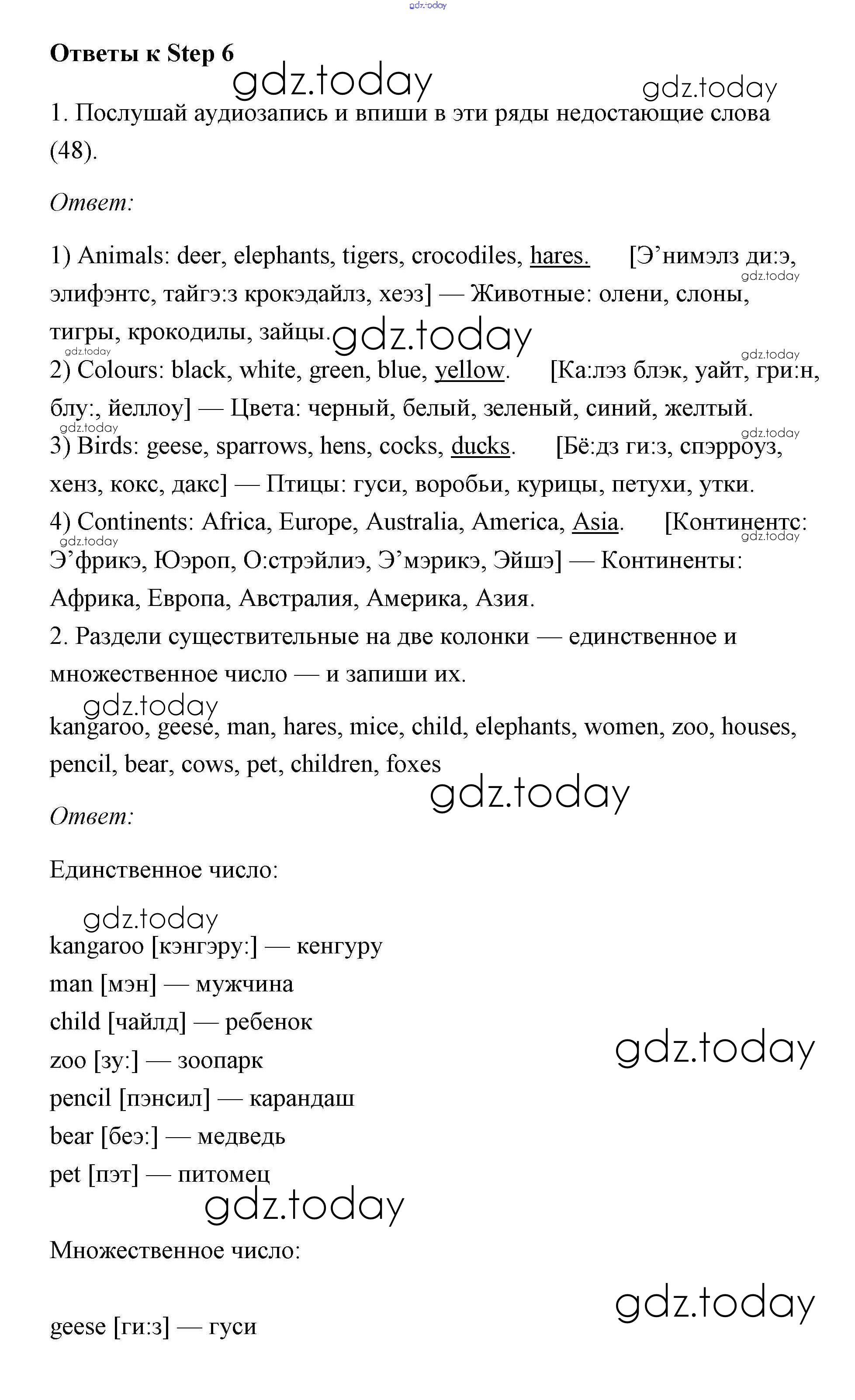 Ответы к Решение к Unit 7 (Step) Step 6 Рабочей тетради по Английскому языку для 3 класса Афанасьева, Михеева Дрофа Rainbow 2015