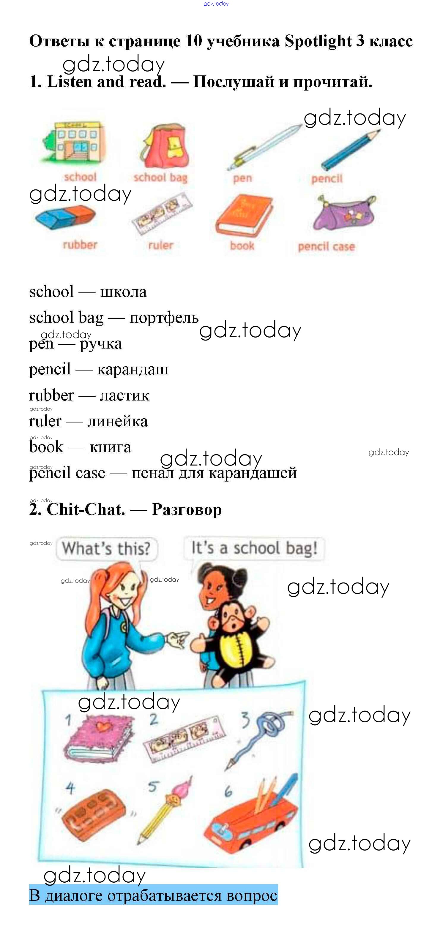 На страницах сайта gdz.today вы найдете учебный и вспомогательный материал, направленный на улучшения знаний школьной программы. ГДЗ - онлайн мир знаний Страницы (решение) 10 Учебнику по Английскому языку для 3 класса Быкова, Эванс Просвещение Spotlight 2015