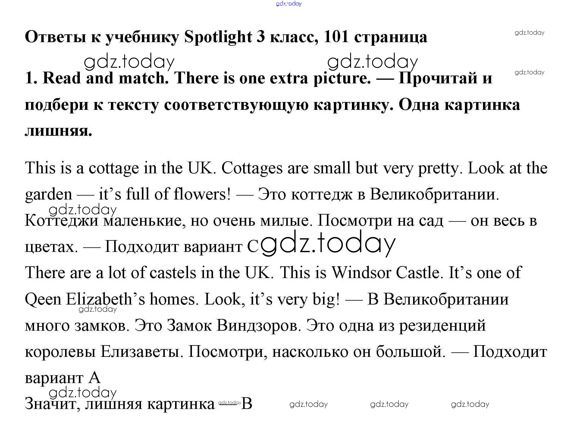 Ответы к Страницы (решение) 101 Учебнику по Английскому языку для 3 класса Быкова, Эванс Просвещение Spotlight 2015