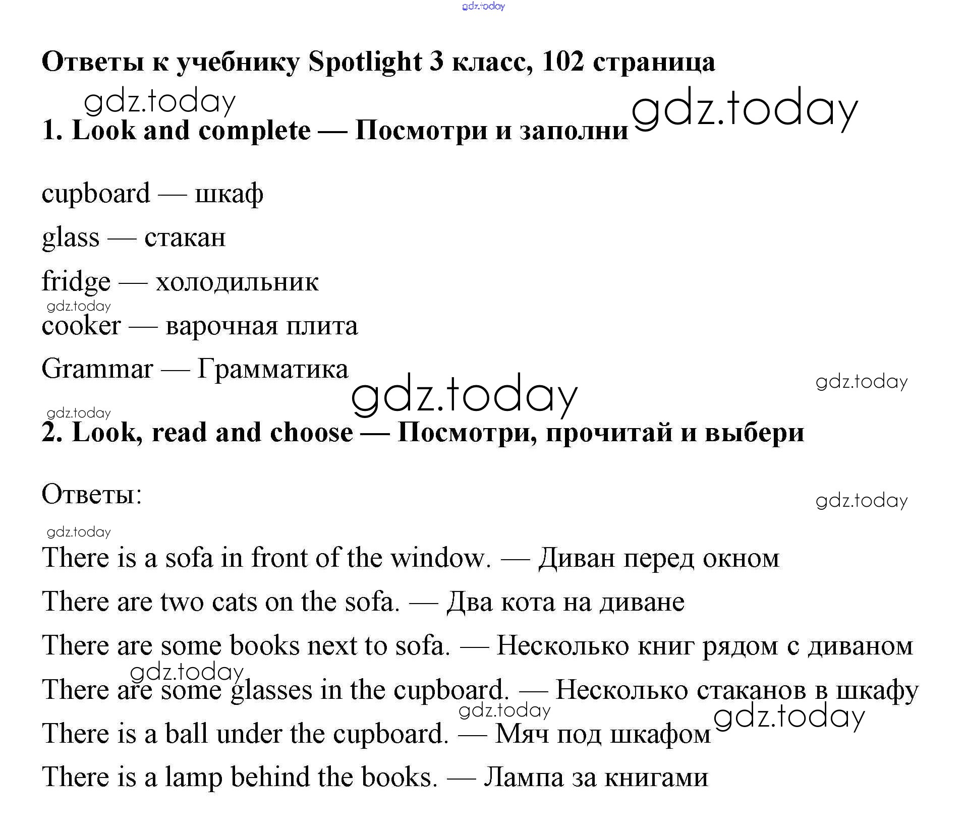 На страницах сайта gdz.today вы найдете учебный и вспомогательный материал, направленный на улучшения знаний школьной программы. ГДЗ - онлайн мир знаний Страницы (решение) 102 Учебнику по Английскому языку для 3 класса Быкова, Эванс Просвещение Spotlight 2015