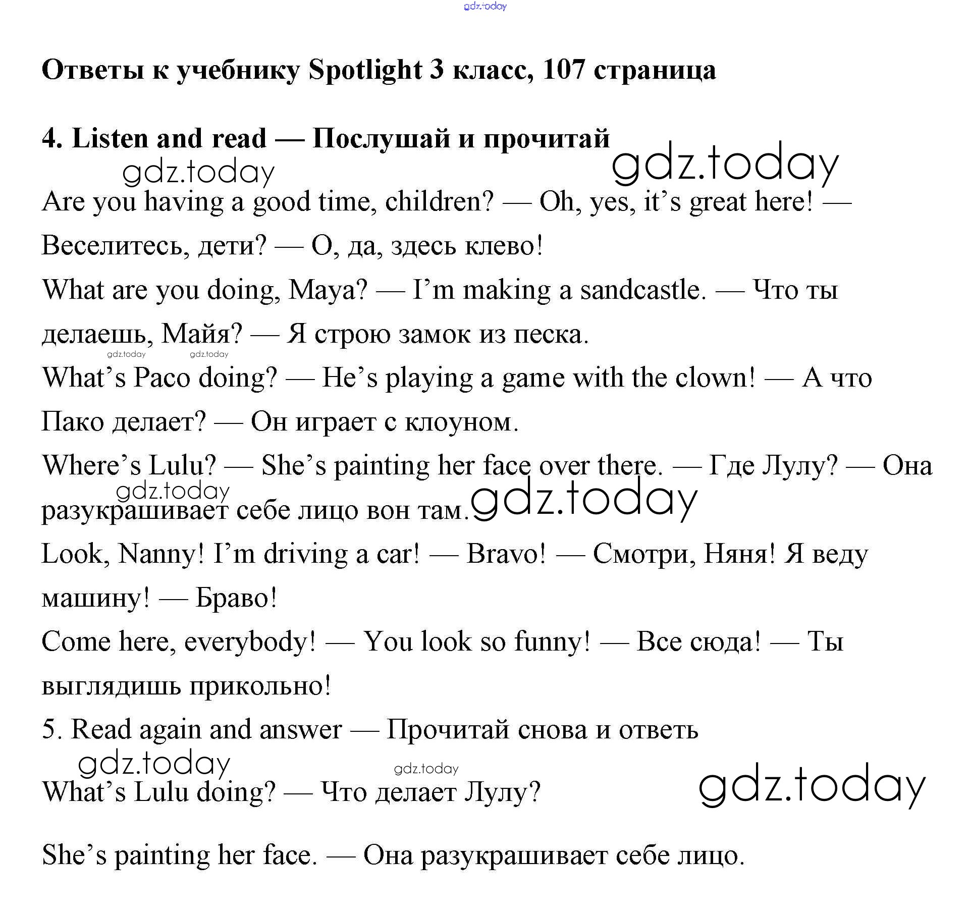 Ответы к Страницы (решение) 107 Учебнику по Английскому языку для 3 класса Быкова, Эванс Просвещение Spotlight 2015
