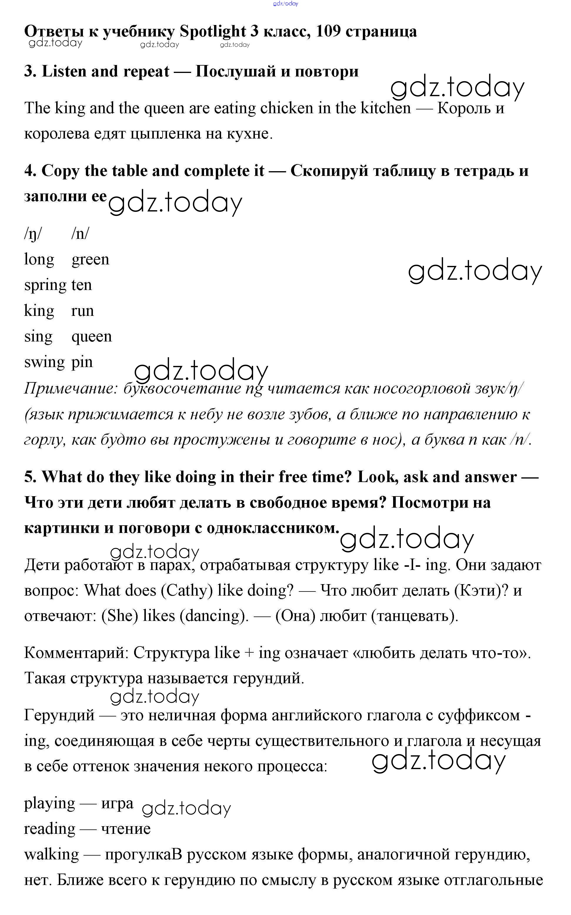 Ответы к Страницы (решение) 109 Учебнику по Английскому языку для 3 класса Быкова, Эванс Просвещение Spotlight 2015