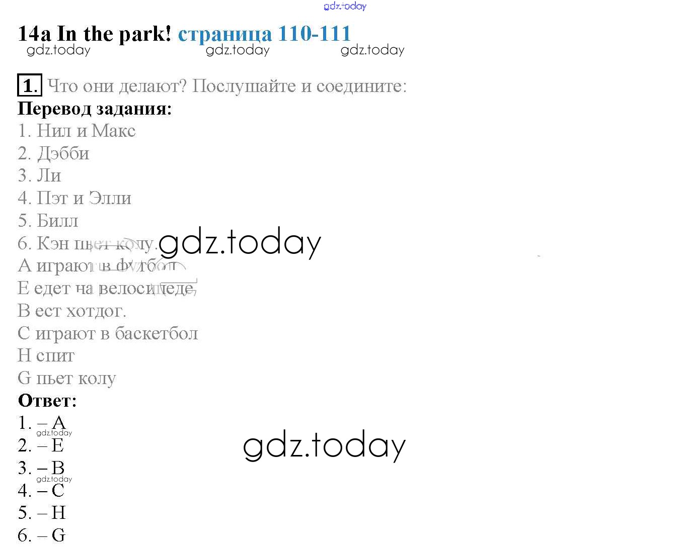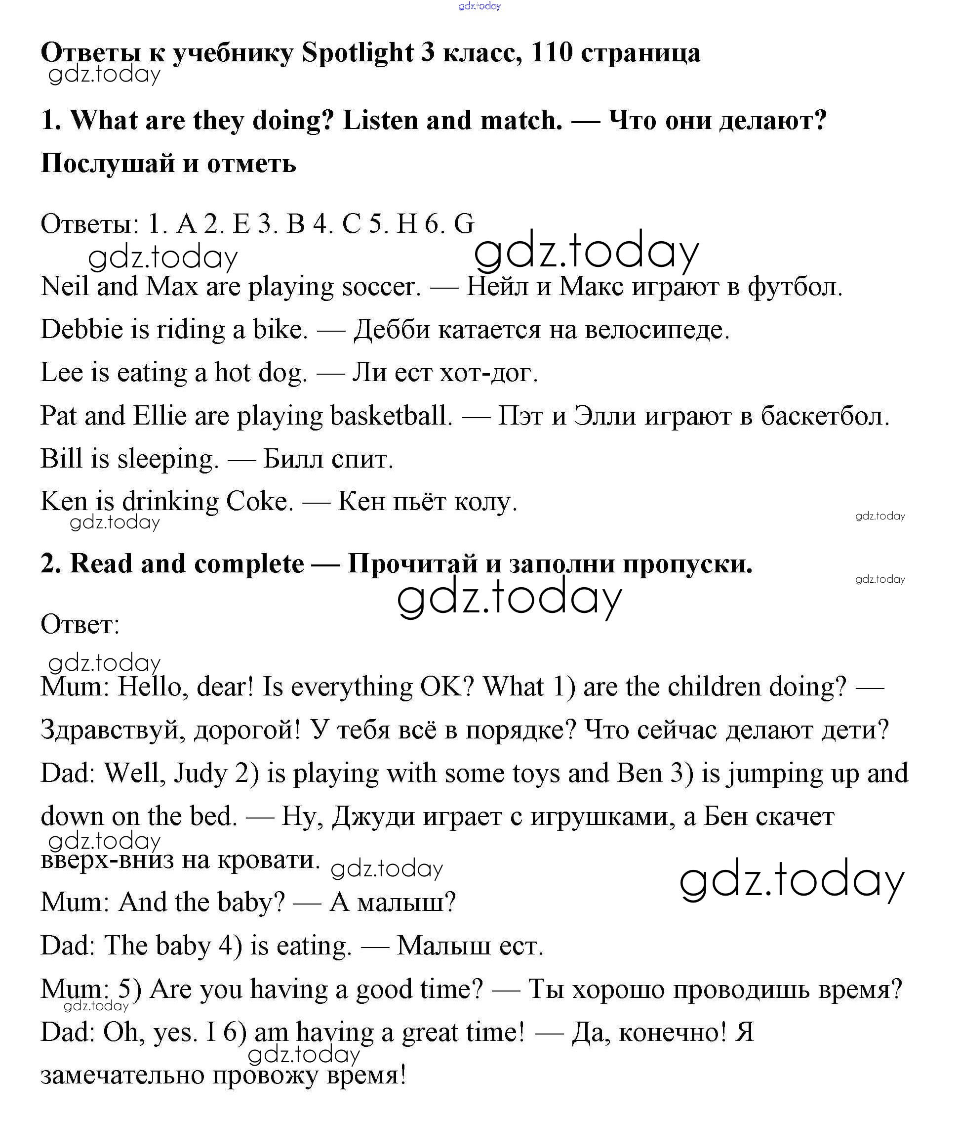 На страницах сайта gdz.today вы найдете учебный и вспомогательный материал, направленный на улучшения знаний школьной программы. ГДЗ - онлайн мир знаний Страницы (решение) 110 Учебнику по Английскому языку для 3 класса Быкова, Эванс Просвещение Spotlight 2015